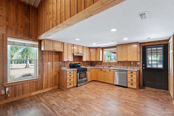 Welcome to 7020 SW Capt Lynn Rd - a private country retreat situated on approximately 3 acres of beautiful North Florida land. This barndominium blends rustic character with thoughtful upgrades and practical features. Inside, you'll find new flooring, an on-demand water heater, and a stunning clawfoot tub in the master bath that adds timeless charm. Anderson double-paned, double-hung windows installed in August 2023 provide energy efficiency and great natural light throughout the home. The property is well-equipped for both everyday living and outdoor enjoyment. There is power run to the pole barn, along with a separate metal building in the pasture featuring a roll-up door. The main well has a new pump, which is enclosed in an insulated metal shed with its own roll-up door for added protection and convenience. A power pole and meter box are also located in the pasture. For added flexibility, the home includes two 50-amp plugs - one on each end of the house - ideal for a camper or motorhome. The entire property spans roughly 3 acres, and the pasture portion is completely fenced, making it ideal for animals or agricultural use. The area is rich with wildlife and offers a peaceful, country setting perfect for those who love the outdoors. Enjoy excellent bass fishing and hunting nearby, with the Dead Lakes just 10 minutes away and close proximity to the Chipola and Apalachicola Rivers. If you're looking for space, functionality, and the quiet lifestyle of country living, this property delivers.