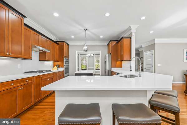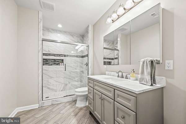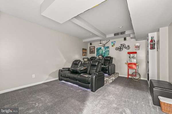 Welcome to this stunning custom-built home at 7022 Barclay Drive, the original model home in the coveted River Glen subdivision. This spacious residence offers nearly 5,000 square feet of finished living space on a beautiful and private 2-acre lot. Built in 2015, the home features thoughtful upgrades, abundant natural light, and versatile living areas across three finished levels-perfect for comfortable everyday living and entertaining. Step through the impressive front door into a welcoming foyer with hardwood floors throughout the main level. To the left, you'll find a dedicated office, a convenient powder room, and a coat closet. To the right, the elegant dining room showcases chair rail and crown molding. The spacious family room is filled with natural light and features a gas fireplace and built-in shelving. The recently remodeled kitchen serves as the heart of the home, complete with a large peninsula, a separate island, brand-new quartz countertops and backsplash, wood cabinetry, a microwave and oven combo unit, and stainless steel appliances. An eat-in area provides direct access to the screened porch and opens to an expansive 12x25 composite deck with vinyl railing-maintenance-free and ideal for outdoor gatherings. The first-floor primary suite offers hardwood flooring, dual closets, and a luxurious en-suite bath with a soaking tub, dual vanities, a walk-in shower, and a private water closet. A mini-split system adds energy-efficient climate control. The laundry room, with washer and dryer that convey, is conveniently located between the kitchen and the oversized garage and includes additional linen and storage space. Upstairs, wide stairways with wood treads lead to hardwood flooring throughout. A loft area provides flexible space for a home office or sitting area. The second primary suite features a recently remodeled bathroom with updated countertops, tile flooring, a tub/shower combination, and a separate toilet area. Two additional generously sized bedrooms and another full bathroom complete this level. From the main level, hardwood stairs lead to the fully finished lower level with tile flooring and recessed lighting throughout. This level includes a multifunction room, finished storage areas, and a large family room accented with shiplap. A kitchenette/bar area features granite countertops, stainless steel appliances, a double sink, and ample space for entertaining. Enjoy movie nights in the dedicated theater room equipped with six powered recliner seats, a projector, screen, and built-in candy shelving. A spacious fifth bedroom with a full-size window overlooking the backyard adds flexibility, along with a beautifully finished full bathroom featuring a tiled walk-in shower with dual shower heads and a large vanity. A screened patio off the lower-level family room extends the living space outdoors. Additional features include a utility room with storage, a new HVAC system installed in 2025, a 75-gallon water heater, and a whole-house humidifier. The home is equipped with an active radon mitigation system, a 500-gallon leased propane tank, and well and septic systems with excellent water quality. The oversized two-car garage includes heavy-duty shelving and cabinetry that convey, and a hidden shed is tucked away at the rear of the property. The inviting front porch, large driveway with additional parking, and front yard sprinkler system add to the home's functionality and curb appeal. The roof is original to the home. Blending modern updates such as quartz and granite surfaces with timeless hardwood and tile finishes, this home offers exceptional comfort and style. Ideally situated on a private lot in a desirable location, it provides a peaceful setting just minutes from Central Park, Spotsylvania Towne Centre, and I-95. Whether you're seeking main-level living, multiple flexible spaces, or a fully finished basement with premium amenities, this home delivers outstanding value and versatility.