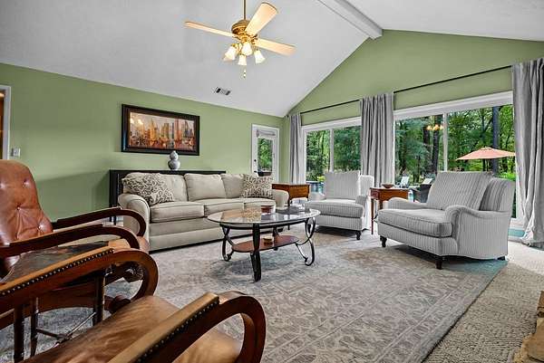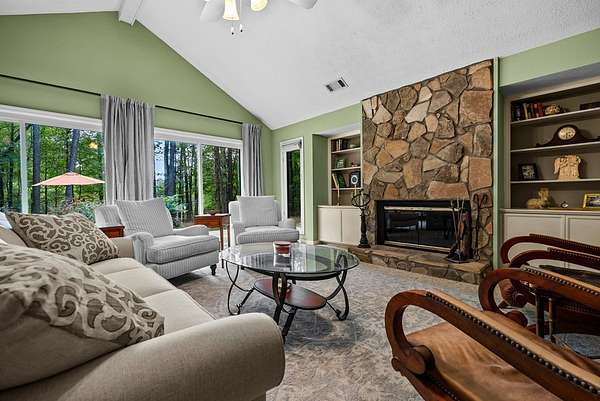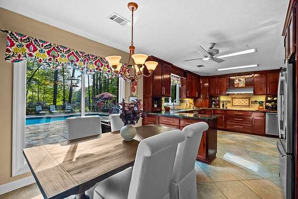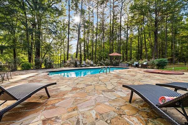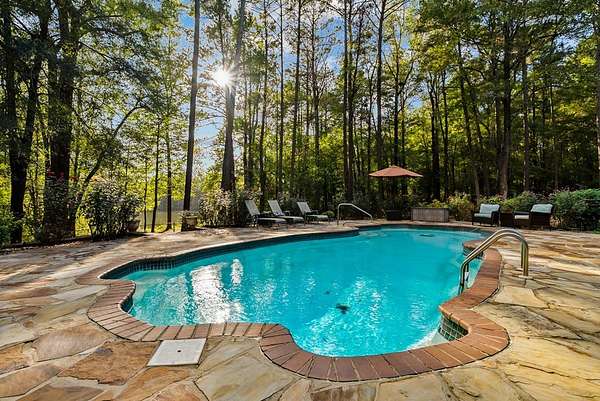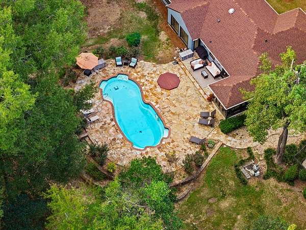 Secluded setting with spectacular views - 153' of waterfront property on a dual parcel 6.4 acre lot, this is an ideal lakeside retreat. Step inside and take in the quality construction of this custom built home. To the left of the entry, you'll find a stately dining room w/ built-in cabinetry, a china closet & high ceilings. Or step straight into the large great room w/floor-to-ceiling stone fireplace, high ceilings and large windows to take in beautiful views of the pool and lake. To the left, enter a large gourmet kitchen updated with rich wood cabinetry and granite counters boasting the best in appliances: Wolf cooktop, wall-oven and warming drawer, JennAir refrigerator, dishwasher & Whirlpool ice maker. Casual dining area has wetbar and wine rack. Multiple bedrooms have large windows with views of the lake. Master bath has large walk-in shower, a bidet, and custom cabinetry for plenty of storage. Greatroom has fireplace w/propane gas starter. Outside the stunning natural surroundings are enhanced by the flatstone patio around the saltwater pool and inground hottub. Separate from house, find a 38x40 workshop/garage metal building with 2 rollup garage door openings. Electricity and water with lots of extra paved pad. Privacy abounds in this serene setting. The acreage borders both Cartledge Rd and Chantileer Trl. Come see what your new lifestyle can be.