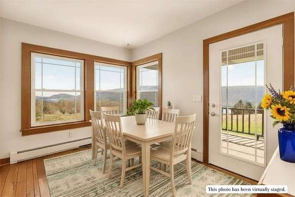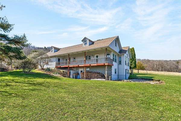 There are properties you see... and then there are properties you feel-and this is one that stays with you. Set on over 14 acres in the rolling hills of South Bristol, this former sheep and crop farm offers rare, unobstructed 180-degree views of Canandaigua Lake that unfold in every season. At the heart of the property stands a late 1800s, two-story barn spanning 2,880 square feet, widely believed to be the most photographed barn in the Finger Lakes, offering both a sense of history and endless possibility. The 1990s-built ranch home with walkout lower level was thoughtfully designed to capture the landscape, with an open floor plan that draws you into a dramatic living space anchored by a wall of windows framing the lake. With 4 bedrooms and 2.5 baths, the home balances comfort and function, featuring a warm, inviting kitchen with a classic wood stove and a full-length porch that invites you to slow down and take in the view. The walkout lower level provides flexible space for guests, work, or recreation, while the unfinished attic offers potential for additional bedrooms or expansion. The land itself is open and expansive, ideal for recreation, gardening, or simply enjoying the quiet beauty of the setting. There is an additional opportunity to purchase a separate 3-acre parcel with road access and an outpost building. This is more than a home-it's a place where land, light, and legacy come together in a way that feels both rare and lasting. Delayed Negotiations April 21, 2026, noon.