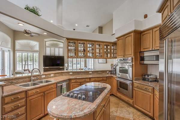 Nestled on a sprawling 2-acre estate, this magnificent residence offers no HOA and over 4,600 square feet of luxurious living space. Step inside to discover exquisite custom travertine tile and gleaming hardwood flooring that flow throughout the home. This stunning property boasts 4 generously sized bedrooms, providing ample space for relaxation and rejuvenation. Work from home in style in the beautifully appointed office, featuring a custom-built hardwood desk, bookshelves, and filing drawers. Upstairs, a separate guest quarters with its own private bath offers the perfect retreat for visitors. The versatile media room is currently being used as a children's playroom, but can easily be transformed to suit your needs. High vaulted ceilings add to the grandeur and luxurious feel of this exceptional home. Don't miss the opportunity to own this incredible estate! Close to shopping, parks and all amenities.