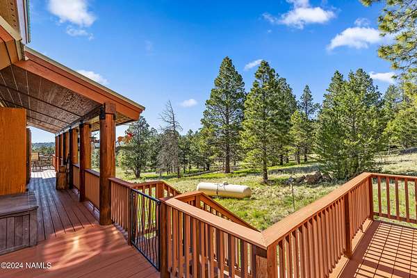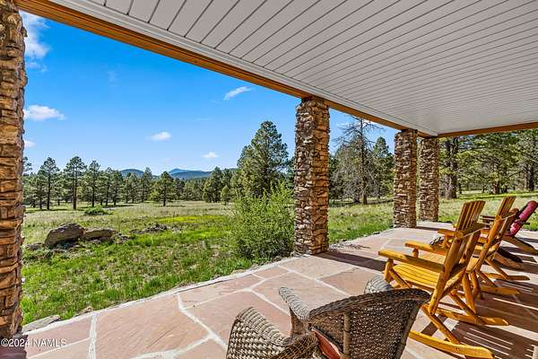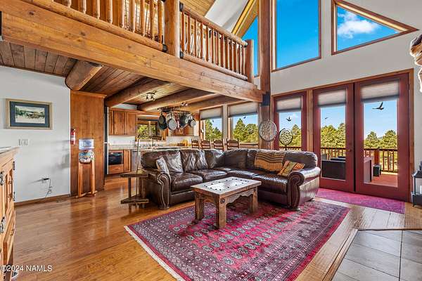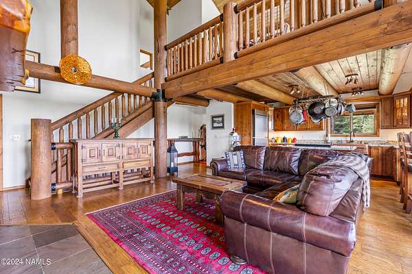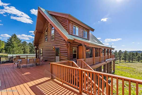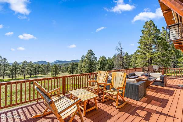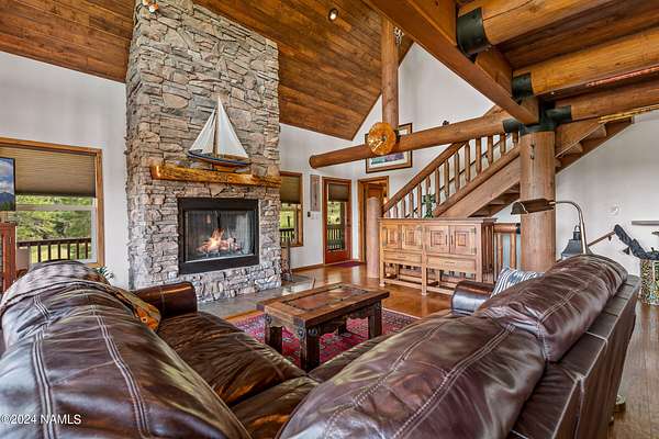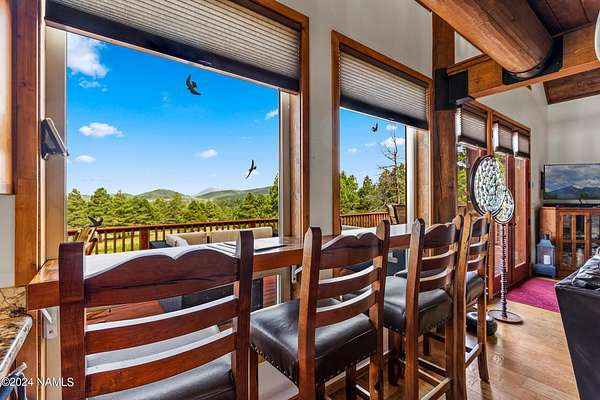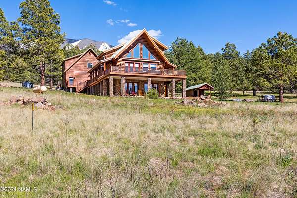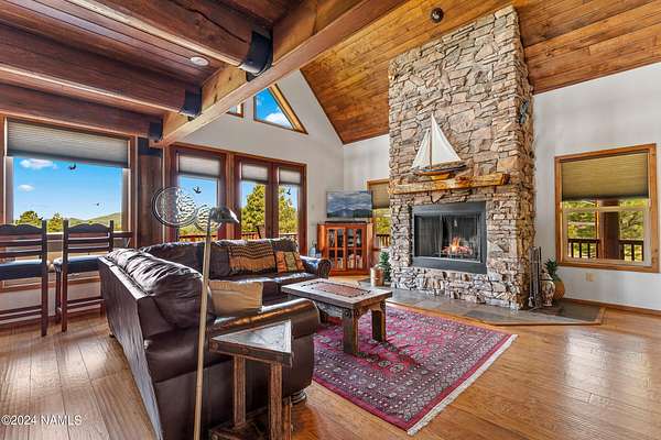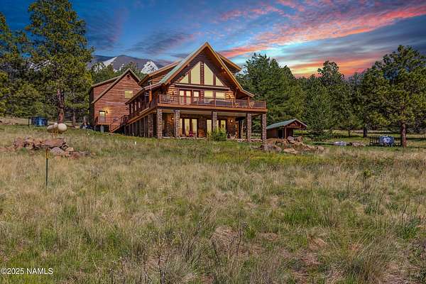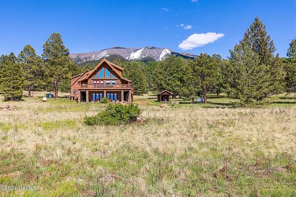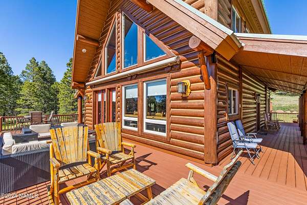 Step into your dream retreat--where the trail begins at your back door and luxury meets the treetops. Just 1.25 miles from Arizona Snowbowl and bordered by national forest, this custom log home is perfect for skiers, hikers, and lovers of mountain air. Rich hickory floors, a chef's kitchen, a wine room, and a wraparound deck make it ideal for hosting or relaxing after a day outdoors. Whether it's sunrise yoga on the deck or stargazing after a snowfall, this home delivers elevated Flagstaff living. NEED INSURANCE? Got you covered. Call agent for details. Insurer will write a new policy, buyer to verify. The open concept living area also features a custom stone grand fireplace, perfect for cozy gatherings on cooler evenings or snowy days and a basement with a separate wine room for the best of entertaining! For those seeking adventure, the National Forest beckons just beyond your doorstep, offering endless opportunities for hiking, biking, and wildlife watching from your expansive wraparound deck, which overlooks an active wildlife game trail. Just .25 miles from the Arizona Trail and only 1.25 Miles to the Snowbowl Lot, escape the ordinary and experience the magic of mountain living in this one-of-a-kind cabin in the woods - where every moment is infused with a sense of wonder and delight.