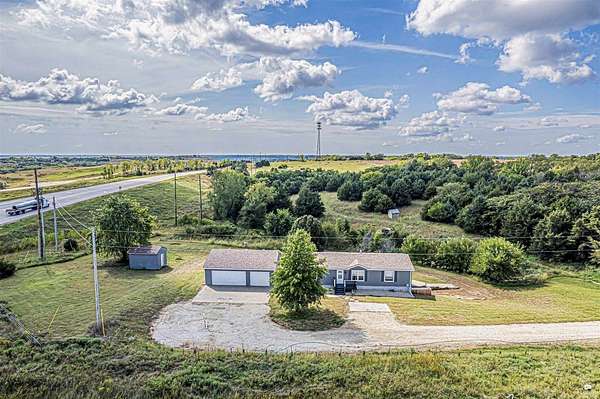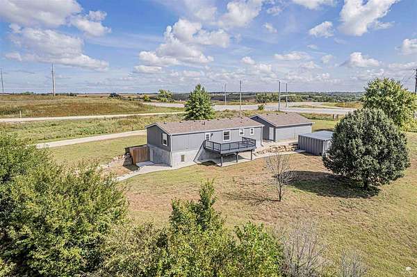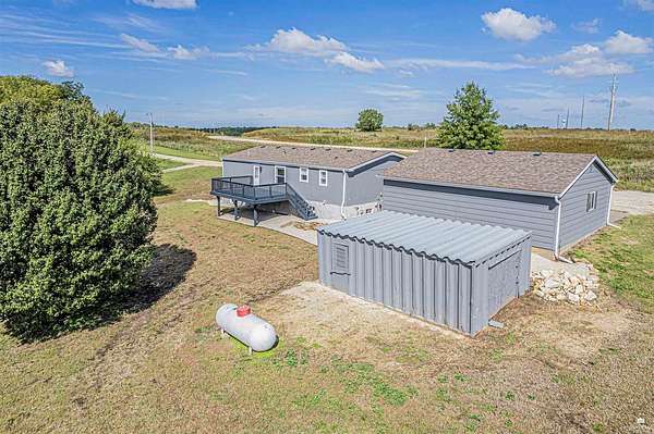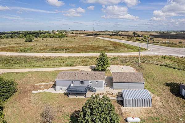 Welcome to this spacious 4-bedroom, 3-bathroom home sits on 8.3 acres, perfectly located just 4 miles from Junction City and only 2 miles from Milford Lake and Parker Gate of Fort Riley. Set on a secluded lot with a gated driveway, this property offers peace, privacy, and abundant wildlife, yet keeps you close to parks, boat ramps, and camping. Inside, you'll find an inviting layout with a roomy kitchen and large walk-in pantry, first-floor laundry, and a walkout basement with well insulated walls ideal for additional living or recreation space. Walkout basement has a concrete space with an additional electrical outlet. Updates include a newer roof, carpet and flooring, a new water heater, and a new dishwasher. Whole home water filtration system. Enjoy propane heat and central air year-round, plus a large deck overlooking nature. Outside features a 3-stall garage, two additional outbuildings for storage and chicken coop. Includes private well and lagoon.Schedule private showing today!