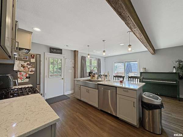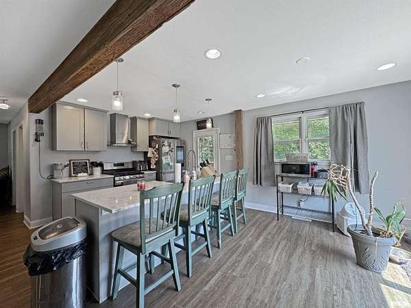 Nestled on 5.26 acres, this gem offers plenty of privacy, perfect for anyone looking to enjoy a bit more room to breathe. Step inside to discover an open floor plan that connects living, dining and kitchen, ideal for entertaining. With five bedrooms and three bathrooms, this home is ideal those looking for a spacious living space. The kitchen is a dream, recently remodeled with a large island that invites family and friends to gather round. The primary suite is your private oasis, with a generous, updated bath featuring a walk-in shower. And for when you need a little extra room, check out the finished walkout basement: it's got a welcoming family room and a full bath, making it perfect for guests or movie nights. Let's not forget the oversized two-stall garage and a heated outbuilding. Plus, those who love sports (or just shooting hoops) will appreciate the basketball court right on your property! If you're looking for a move-in-ready home that offers a peaceful setting and plenty of opportunities to make it your own, this is it! Roof on house and garage 2025.