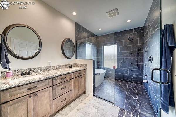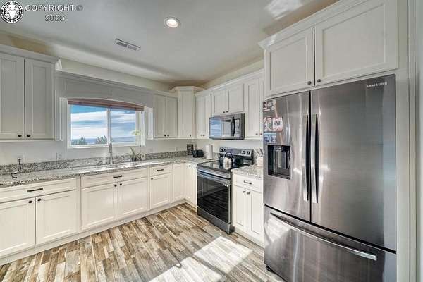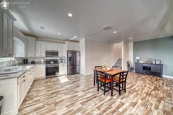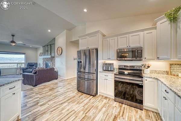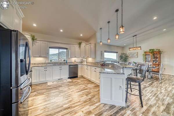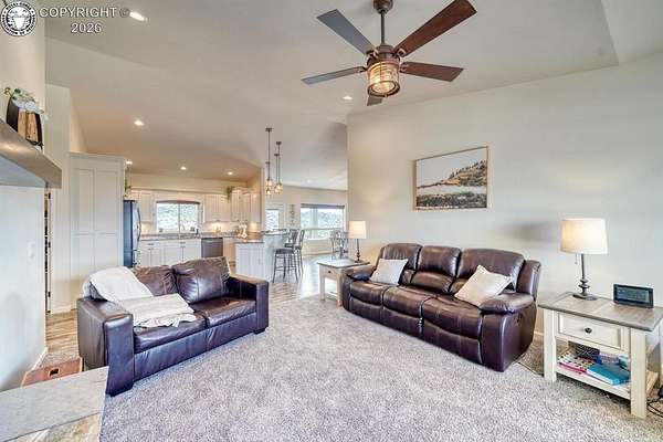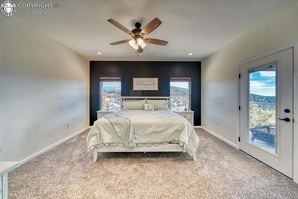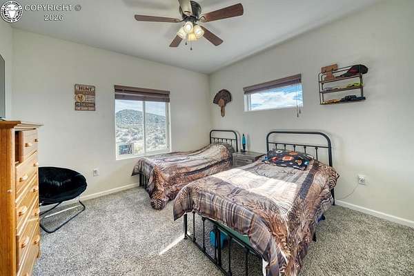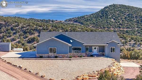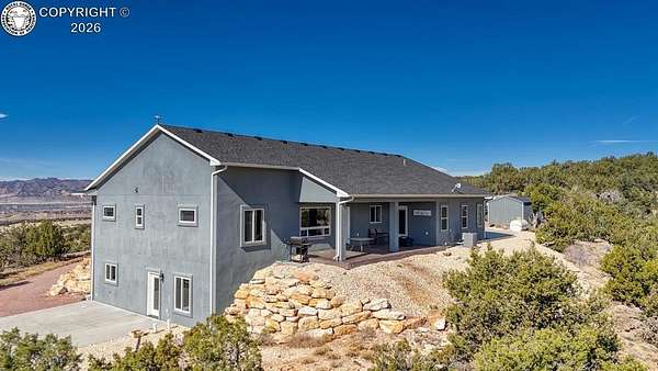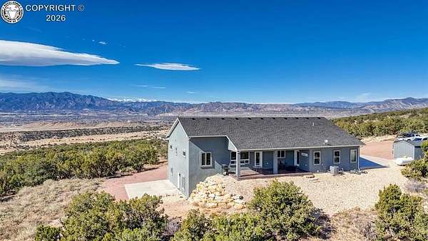 Perched on 35.67 acres bordering BLM land with views that seem to stretch forever, this exceptional 4,332-square-foot home offers space, comfort, and the kind of setting that reminds you why Colorado living is so special. From the moment you arrive, the wide-open landscape and sweeping mountain vistas create a sense of peace and privacy that is hard to find. The main level welcomes you with an open kitchen concept designed for gathering and everyday living. Generous living and dining spaces flow effortlessly together, creating a warm and inviting environment for both quiet evenings and lively get-togethers. The beautiful primary suite provides a relaxing retreat, offering space, comfort, and privacy at the end of the day. The main level also features three bedrooms and two and a half bathrooms, thoughtfully arranged to provide functionality and flexibility for family or guests. Natural light and expansive views continue throughout the upper level, bringing the surrounding landscape into nearly every room. The lower level adds even more versatility with three additional bedrooms-two of which are non-conforming-a bathroom, a spacious family room, and a secondary kitchen that is ideal for entertaining, extended stays, or multi-generational living. This level creates the perfect setting for gatherings, game nights, or hosting visitors with ease. With over 35 acres to enjoy and direct access to bordering BLM land, there is room to explore, ride, and fully embrace the Colorado lifestyle, all while taking in views that feel endless in every direction.