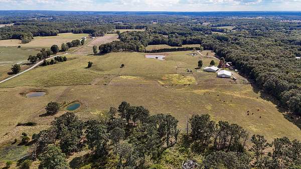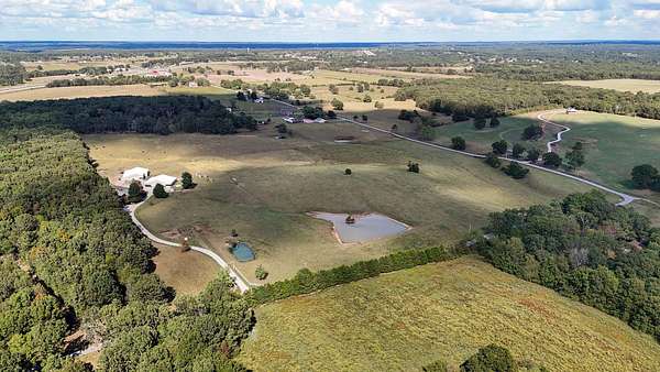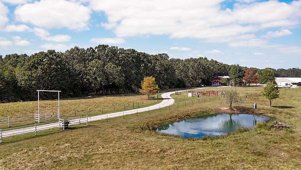 Exceptional 50+/- acre cattle, goat, or equestrian property in Webster County with Highway 60 access for an easy Springfield commute. Enjoy peaceful country views from the comfort of your front porch!The farm is fenced and cross-fenced into 8 paddocks with seven-strand Red Brand wire, waterline plumbed through pasture for additional future waterers, 4 ponds, a new steel pipe working cattle system with automatic head gate, and a separate bull pen.The livestock barn features concrete floors and multiple rooms including a climate-controlled milking room with on-demand hot water, office with half bath, feed/workshop areas, and a climate-controlled product display room. Additional highlights include plenty of lean-to space for tractor and hay storage, electric overhead garage doors, a 16' sliding door, and water systems with multiple spigots and an automatic waterer.The main residence offers 3 bedrooms, 2.5 baths, an office, beautiful kitchen, and family room. The upstairs suite includes a Jacuzzi bath, full bathroom, and balcony. Garage currently serves as climate controlled bonus room with water access, but can be converted back.Also included is an Airbnb property with 2 bedrooms (1 nonconforming), 1 bath, kitchen, laundry, covered porch, separate septic, workshop, and lofted storage space that could be finished. A storm shelter and large storage areas add even more versatility.This property combines the best of farm functionality, income opportunity, and residential comfort making it a turnkey investment. Seller is providing a home warranty for the buyer's peace of mind.Additional acreage options are available with the property.