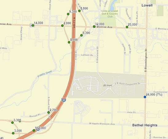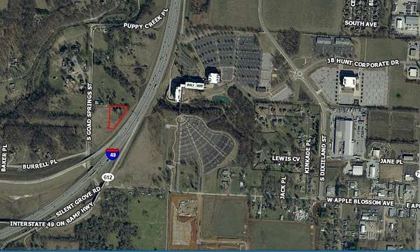 Est $3,348/mo1.58+/- acres of prime commercial property, visible from I-49 with 102,000 daily travelers and directly across the highway from JB Hunt Transportation Headquarters. The opportunities are endless! Zoned C-2. Public water, electric, & gas are on site.
