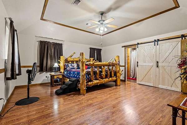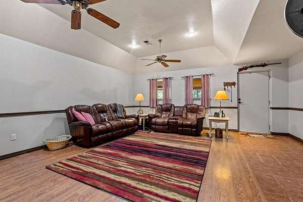 Set on this land is a 3,000 square foot barndominium home featuring 3 bedrooms, 2 bathrooms, a bonus room that can serve as an office, and a converted garage for extra living space. The layout is open and spacious, designed to fit everyday life with room to grow.