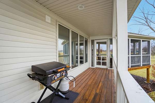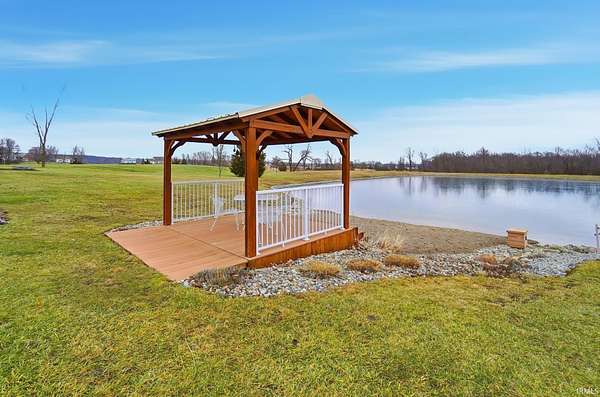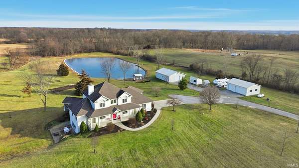 Welcome home to 7030 E Hopewell Road, a well-maintained, 1 owner Palisade built estate offering space, privacy, and craftsmanship on 13.5 scenic acres across two parcels in quiet Avilla, Indiana. With 3,324sqft of finished space, 3 bedrooms, and 3.5 bathrooms, this beautifully designed two story home delivers country living at its finest. Step inside to a dramatic living room with soaring 17' ceilings and a cozy gas fireplace, creating a warm and inviting gathering space at the center of the home. The kitchen is a true masterpiece, featuring quartz countertops, luxury vinyl tile flooring, custom soft close cabinetry, and 2021 stainless steel appliance suite including a gas cooktop, and built-in convection oven with microwave. Thoughtful details and quality finishes are found throughout the home. The primary suite is a private retreat with a tray ceiling, jetted tub, walk-in glass shower, his and her closets, and screened porch access. Upstairs offers two bedrooms with vaulted ceilings and a spacious bonus room that could be used as a 4th bedroom or flex space. The walk out basement with 8'-9' ceilings opens to a patio and provides additional living and entertaining potential. Mechanical features include a high efficiency Trane furnace with heat pump and propane applications, humidifier, gas water heater, 2023 water softener, Kell well, Pex and Manabloc plumbing, and a rented 500 gallon propane tank through Keystone Cooperative. Outside, the property truly shines with a one acre pond featuring an aerator, ledges at 6' and 12', and a depth of 18', complete with a 10x10 cabana overlooking the water. Enjoy peach, plum, and apple trees, exterior soffit lighting, and multiple outbuildings including a 40x30 barn with 200 amp service, 32x24 detached garage, 10x16 gardening shed, and 8x8 greenhouse. Located near Chain O Lakes State Park, Avilla Park, and Noble Hawk Golf Course, with convenient access to Dollar General, Walmart Supercenter, Kroger, and local favorites like The Pizza Place, St James Restaurant, and Taps Pub. National options including McDonalds, Subway, and Biggby Coffee are nearby, along with banks, gas stations, and ATMs in Avilla, Kendallville, and Auburn. Easy access to Hwy 3 completes the package with a sub-30 minute drive to the North side of Fort Wayne. This rare property offers space, quality, and lifestyle opportunities that are truly hard to find. Priced-to-sell below assessed value, schedule a tour today!