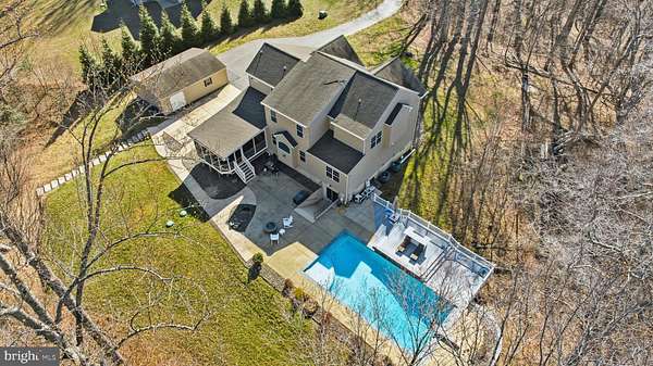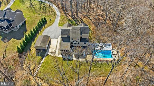 OPEN HOUSES SATURDAY, 3/28 & SUNDAY, 3/29 BOTH 12-2. WELCOME TO YOUR DREAM HOME! Privately set on approximately 35 wooded acres in Northern Calvert County, this exceptional property offers a rare combination of space, privacy, and thoughtfully designed living through every corner! Featuring over 5,000 square feet, this Marrick Homes Grand Pinehurst model is complemented by a detached 24x32, a long private driveway, immaculate exterior care and hardscaping, a detached garage, and expansive grounds that provide both usable space and a peaceful, natural setting. Make your way up to the front door soaking in the desirable curb appeal with stone & vinyl siding and a welcome front porch. Inside, a bright and open layout welcomes you with a two-story foyer, 9-foot ceilings, LVP flooring, tons of recessed lighting, and well-appointed living spaces designed for both everyday comfort and entertaining. The main level includes an office, formal dining room, and a spacious family room anchored by a striking fireplace with stone surround and custom window detail. The kitchen is both functional and refined, offering granite countertops, a large island with breakfast bar, gas cooktop, double wall ovens, newer stainless-steel appliances, walk-in pantry, and a sun-filled breakfast area. Just off the kitchen, a screened-in porch overlooks the pool and backyard, creating a seamless transition to outdoor living. A main-level bedroom with a full bath and walk-in closet provides ideal flexibility for guests or multi-generational living, along with a mudroom and access to the attached 2-car garage! Upstairs, the spacious primary suite offers a true retreat a sitting area, an expansive walk-in closet, and an attached bathroom featuring dual vanities and an oversized shower. Upper-level bedrooms #2, #3, and #4 all equipped with ceiling fans and walk-in clients are all generously sized, including one with a private en-suite bath and two connected by a Jack-and-Jill bathroom. The upper-level laundry room includes additional cabinetry and storage for convenience. The fully finished lower level expands the home's functionality with a rec room area with built-in shelving, wet bar with refrigerator, dedicated theater room, a home gym area, an additional bedroom, full bath, and ample storage space. The outdoor living is really the cherry on top... A heated 20x40 gunite pool serves as the centerpiece, surrounded by an expansive patio, fire pit area, and poolside bar... creating a private, resort-style setting ideal for entertaining or relaxing. The surrounding acreage offers endless possibilities for recreation, trails, or simply enjoying the natural landscape. Additional highlights include a 4-zone HVAC system with multiple thermostats, tankless water heater, NOVO 6-zone speaker system, attached 2-car garage, and no HOA. Conveniently located for commuting to DC, Annapolis, and NOVA, this is a rare opportunity to own a private, amenity-rich estate in a sought-after location in prime Calvert County!