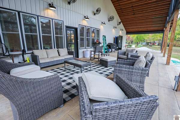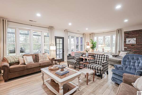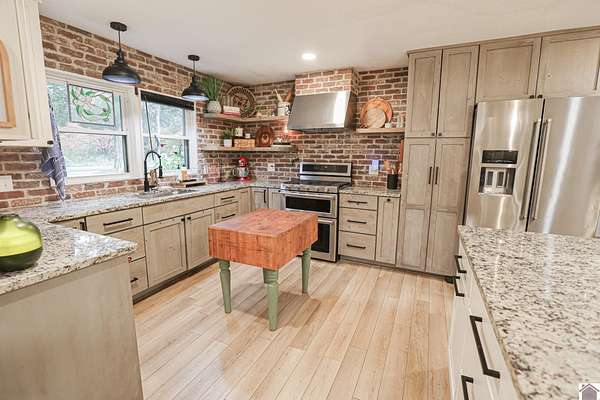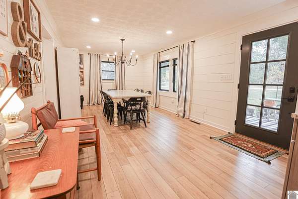 Discover the best of modern country living in this beautifully updated 5 bedroom, 3 bathroom home offering 2,900+ sqft on just under 10 peaceful acres. Perfect for animals, gardening, deer hunting, or creating your own mini farm. Thoughtfully expanded with a newer addition with its own HVAC system and a completely remodeled original section, this home offers generous space to spread out and room for everyone. You'll find a charming kitchen with stainless appliances and a butcher block island, a dining room with a wet bar, and a cozy living room with a brick accent wall that leads directly out to the massive covered back deck. The outdoor space is ideal for entertaining or unwinding: Host summer cookouts on the porch, relax by the firepit, or spend the day by the pool. With plenty of open land, shade trees, and stunning views, this property combines rustic lifestyle with modern comfort and convenience. The roof is also only 5 years old. Your countryside escape awaits!