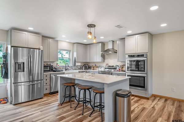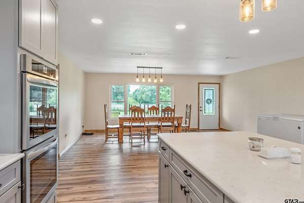 Escape the city life to the tranquility of East Texas with this totally remodeled 3 bed 2 bath home nestled on 31 sprawling acres in Hawkins, TX. This retreat offers the perfect blend of peaceful country living and modern comfort, ideal for homesteading, recreation, or simply enjoying wide open spaces. Step inside to a welcoming floor plan featuring a garage conversion living area, a well appointed kitchen with quartz counters, farmhouse style sink, 3 ovens, ample cabinetry, breakfast bar and large dining area. The primary suite includes a private bath with separate shower and soaking tub, while 2 additional bedrooms offer plenty of space for family, guests or home office. Outside you will find open pasture with scattered trees, perfect for grazing livestock, or additional living/workshop. Located just minutes from Lake Hawkins and an easy drive to either Tyler or Longview. Whether you are looking for fulltime living, small ranch, or room for the whole family this property delivers. Come see! Come Buy!