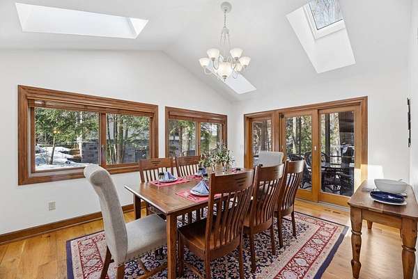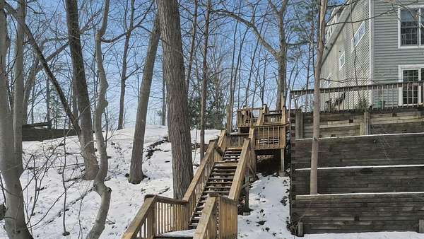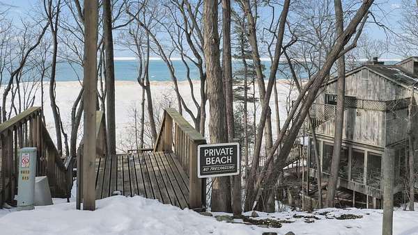 Highland Shores Retreat in Sawyer, MI with Lake Access sits this beautifully maintained 3-bedroom, 3-bath home tucked among mature trees in the desirable Highland Shores community of Sawyer, Michigan. It offers peaceful, wooded views from every room. Vaulted ceilings and skylights fill the space with natural light, while warm wood and stone accents create a cozy, inviting atmosphere. The primary suite is a true escape with a soaking tub, separate shower, and private deck access. You'll also find a charming breakfast nook, an office or sleeping loft with built-ins, and plenty of outdoor living areas a large, screened porch, multiple decks, and even a hot-water outdoor shower. The exterior has been freshly painted, and the landscaping updated, making this home move-in ready. With approx 600Ft of Lake Michigan access through the association, it's the perfect place to enjoy summer fun or a relaxing year-round lifestyle. Public Open House Saturday-2/21/2026 2-4 pm EST.