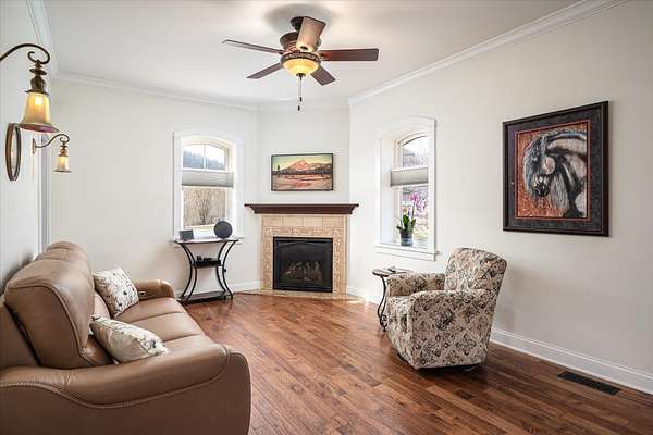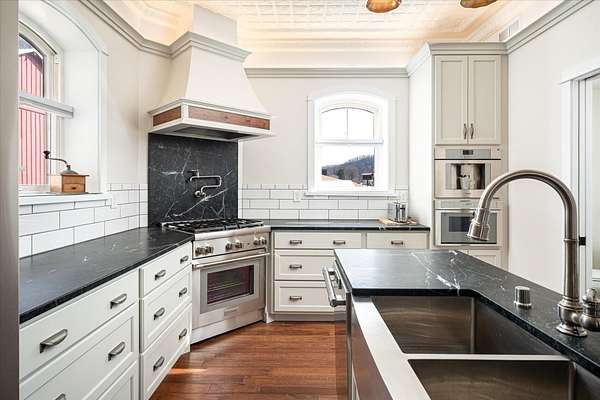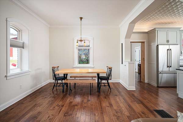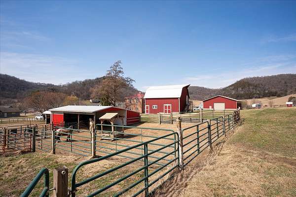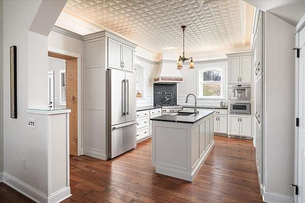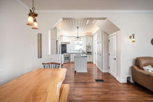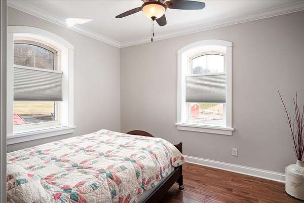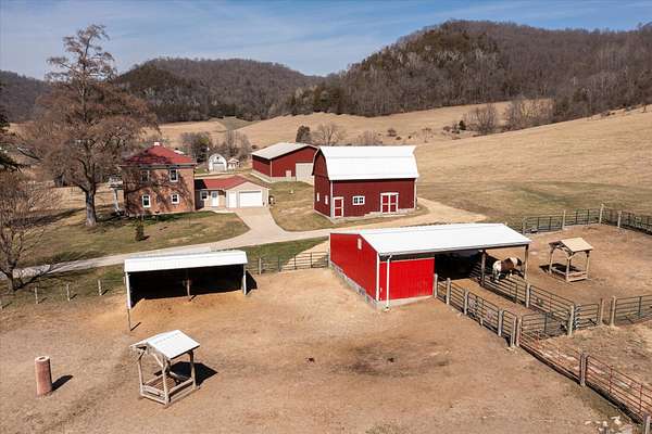 Charming Farmhouse with elegant updates. This magical home is located on the edge of town on 19.13 acres. 4 bedrooms, 2.5 bathrooms, 1 car attached gar w/ heat & water. Primary BR w/private bath.Several outbuildings include a 48 X 72 pole shed in 2012 w/ electric overhead door, 3-sided shed w/water heaters in 2016 & an additional barn & a grand 70 X 140 arena. Lrg kitchen w/island remodeled in 2024 w/maple cabinets, Thermador appliances, solid soapstone countertops & an original restored tin ceiling. Hickory floors & high ceilings are a plus! The updates are endless: New furnace, A/C & ductwork 2017, new metal roof on house & garage w/5'' gutters & leaf guards & down spouts 2018, fireplace, porch & water heater 2023, well pressure tank 2015 & new barn roof 2016. City sewer, private well