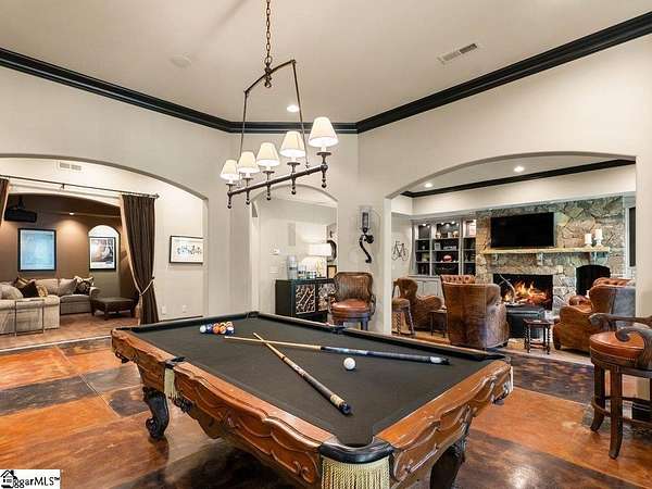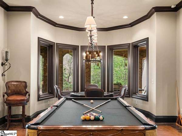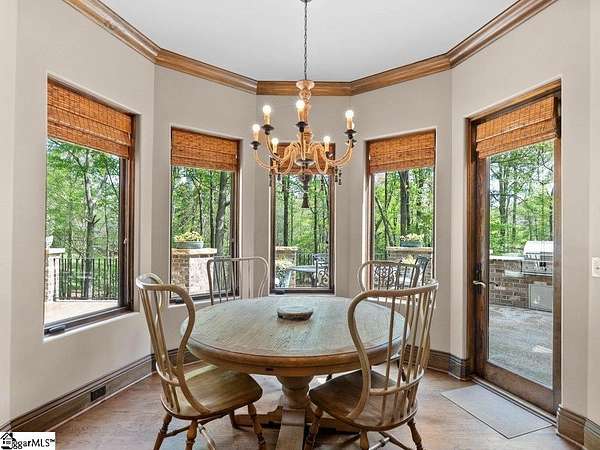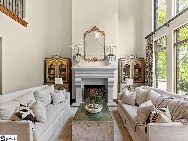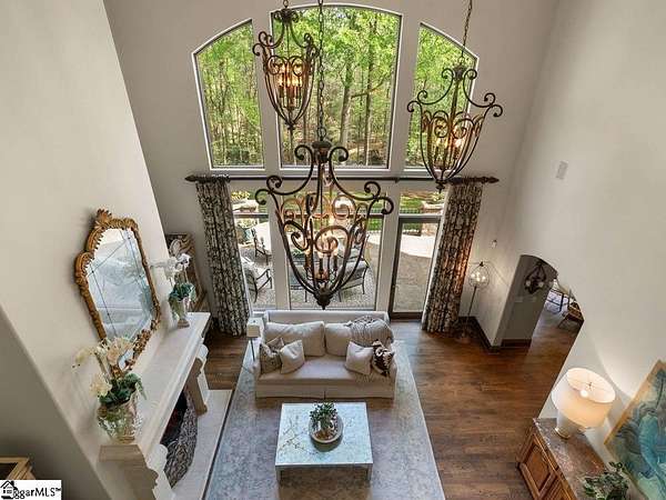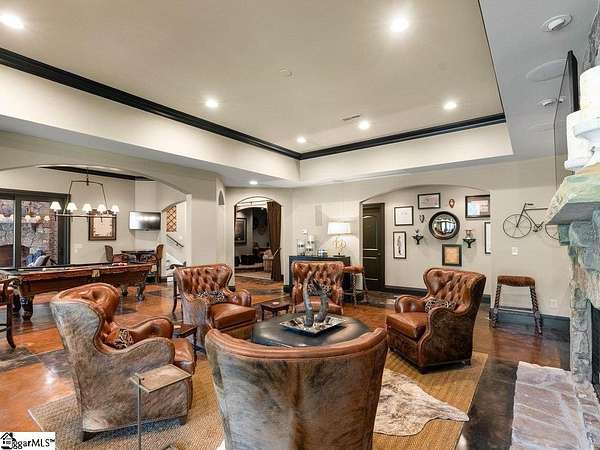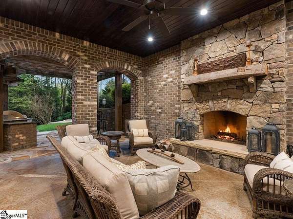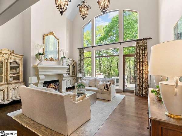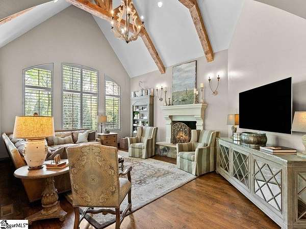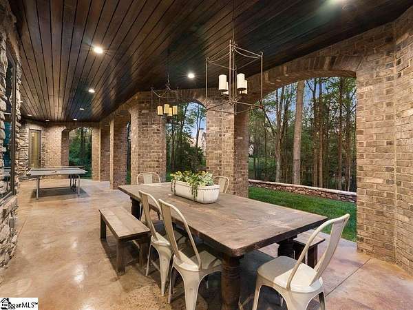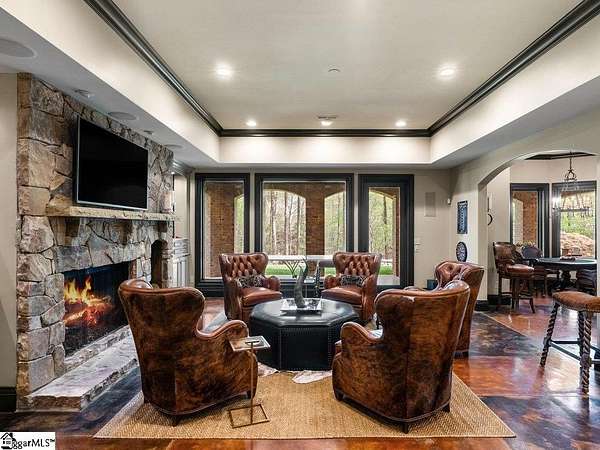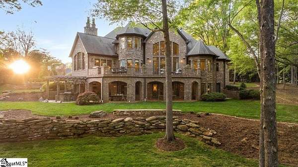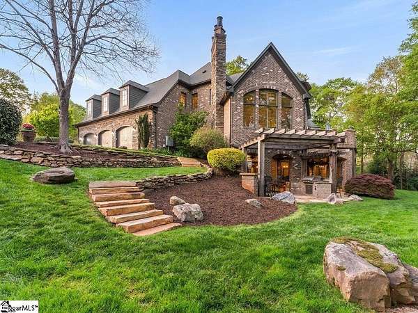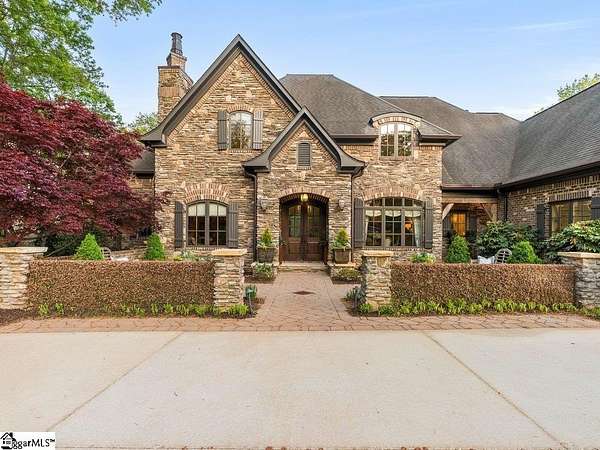 Welcome to one of Cobblestone’s most exceptional offerings— 704 Brixton Circle- where timeless architecture, refined craftsmanship, and resort-style living converge in a truly unforgettable park like setting. The custom 5BR/5.5BA estate immediately captivates with its striking stone and brick façade and commanding presence. This home simply sprawls across the 1.5 acre creekfront homesite, nestled among mature trees, & beautifully curated landscaping all tiered down to the fire pit and creek via the natural stone retaining walls and stairs! Entering through the European courtyard you are immediately greeted by a grand two-story foyer with a sweeping staircase that sets the homes tone—elegant, warm, and effortlessly sophisticated. Thoughtfully designed for both everyday living and elevated entertaining, the main level unfolds with gracious living spaces, rich hardwoods, detailed millwork, and soaring ceilings that invite natural light throughout. The great room is a showpiece, anchored by exposed beams and a stately fireplace, while walls of windows frame serene views of the surrounding landscape. The kitchen is as functional as it is beautiful—featuring custom cabinetry, a substantial center island, high-end appliances, and seamless flow into inviting gathering spaces. From intimate dinners to large-scale entertaining, every detail has been carefully considered. The primary suite offers a private retreat with a spa-inspired bath and tranquil views, while additional bedrooms and living areas provide both comfort and flexibility for family and guests. The lower level is a destination all its own—designed for both entertaining and retreat. A private, richly appointed pub-style lounge, is the perfect spot for hosting a wine tasting. Enjoy evenings around the billiards table, gather for cards, or unwind in the dedicated fitness room. An additional private suite on this level offers ideal accommodations for guests or multigenerational living, all wrapped in the same elevated finishes found throughout the home. Step outside and experience a setting that rivals a private resort. Expansive terraces, covered outdoor living spaces, outdoor kitchen, and multiple entertaining areas overlook a picturesque, park-like backyard complete with a firepit gathering space and lush natural surroundings. Every inch of this home reflects intentional design, quality craftsmanship, and a level of care rarely found. Hidden within the gates of one of the Upstate’s most sought-after communities, this is more than a home—it’s a lifestyle. The Five Forks location is just minutes away from great restaurants, shopping, entertainment, great schools, major highways & GSP International Airport, making it the perfect abode for those who demand the very best in luxury and convenience.