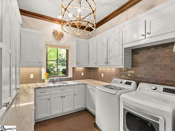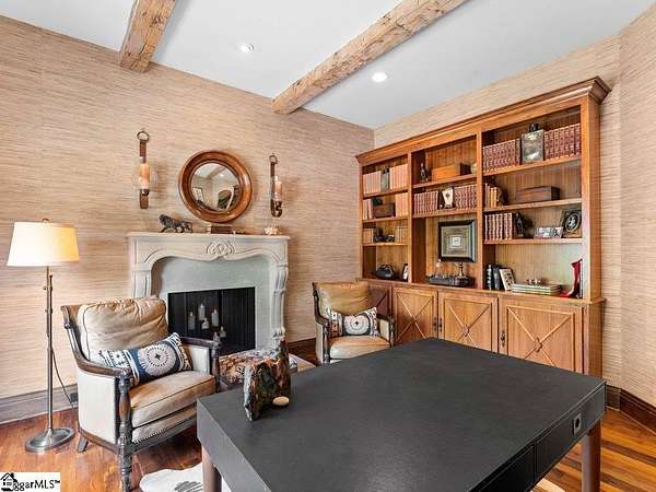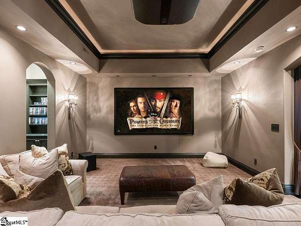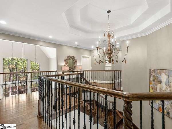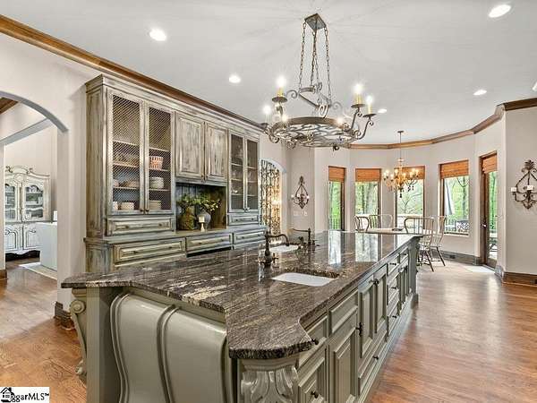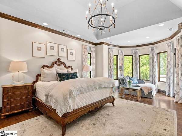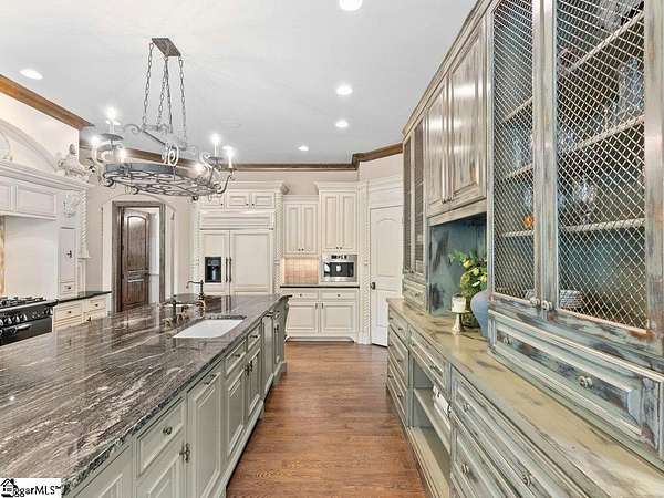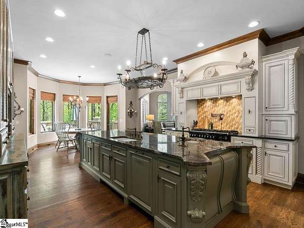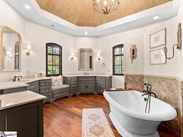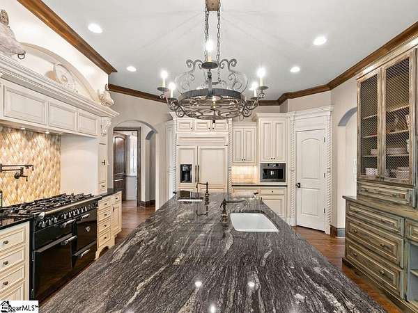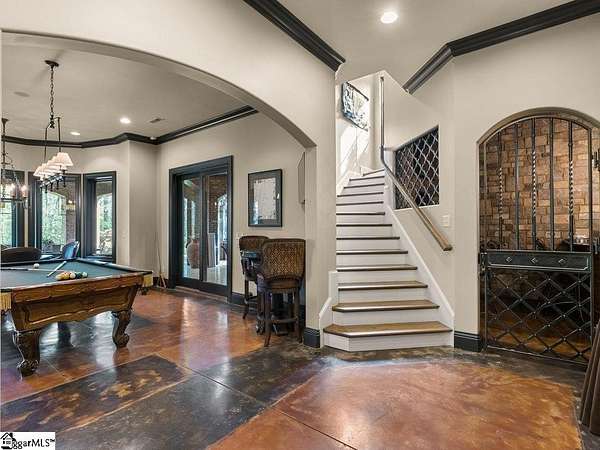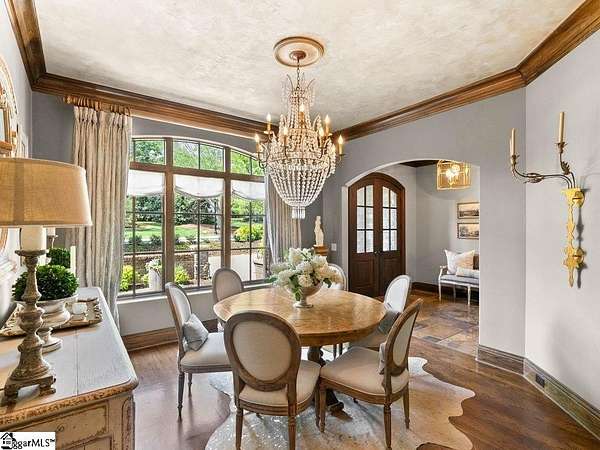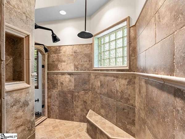 Welcome to one of Cobblestone’s most exceptional offerings— 704 Brixton Circle- where timeless architecture, refined craftsmanship, and resort-style living converge in a truly unforgettable park like setting. The custom 5BR/5.5BA estate immediately captivates with its striking stone and brick façade and commanding presence. This home simply sprawls across the 1.5 acre creekfront homesite, nestled among mature trees, & beautifully curated landscaping all tiered down to the fire pit and creek via the natural stone retaining walls and stairs! Entering through the European courtyard you are immediately greeted by a grand two-story foyer with a sweeping staircase that sets the homes tone—elegant, warm, and effortlessly sophisticated. Thoughtfully designed for both everyday living and elevated entertaining, the main level unfolds with gracious living spaces, rich hardwoods, detailed millwork, and soaring ceilings that invite natural light throughout. The great room is a showpiece, anchored by exposed beams and a stately fireplace, while walls of windows frame serene views of the surrounding landscape. The kitchen is as functional as it is beautiful—featuring custom cabinetry, a substantial center island, high-end appliances, and seamless flow into inviting gathering spaces. From intimate dinners to large-scale entertaining, every detail has been carefully considered. The primary suite offers a private retreat with a spa-inspired bath and tranquil views, while additional bedrooms and living areas provide both comfort and flexibility for family and guests. The lower level is a destination all its own—designed for both entertaining and retreat. A private, richly appointed pub-style lounge, is the perfect spot for hosting a wine tasting. Enjoy evenings around the billiards table, gather for cards, or unwind in the dedicated fitness room. An additional private suite on this level offers ideal accommodations for guests or multigenerational living, all wrapped in the same elevated finishes found throughout the home. Step outside and experience a setting that rivals a private resort. Expansive terraces, covered outdoor living spaces, outdoor kitchen, and multiple entertaining areas overlook a picturesque, park-like backyard complete with a firepit gathering space and lush natural surroundings. Every inch of this home reflects intentional design, quality craftsmanship, and a level of care rarely found. Hidden within the gates of one of the Upstate’s most sought-after communities, this is more than a home—it’s a lifestyle. The Five Forks location is just minutes away from great restaurants, shopping, entertainment, great schools, major highways & GSP International Airport, making it the perfect abode for those who demand the very best in luxury and convenience.