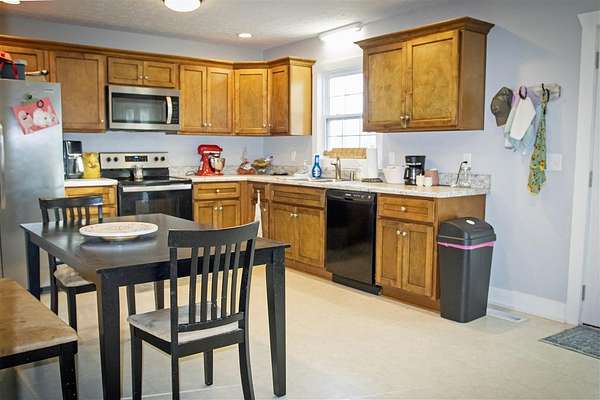 Charming country home on 5.1 acres- perfect for a starter farm! Welcome to this adorable home featuring a durable metal roof and a freshly painted brick exterior offering timeless curb appeal. Step inside the kitchen to discover a newly updated floor and all appliances will remain with the home making move-in a breeze. The spacious 5.1-acre lot is partially fenced and ready for your small farm dreams- bring your animals, start a garden, or simply enjoy the open space. Relax on the inviting front porch and take in breathtaking sunsets over your beautiful property. This home combines comfort, functionality, and rural charm creating the perfect setting for peaceful country living. Don't' miss your chance to own this lovely home and start your next chapter in the countryside! Seller offering $3,000 concession!