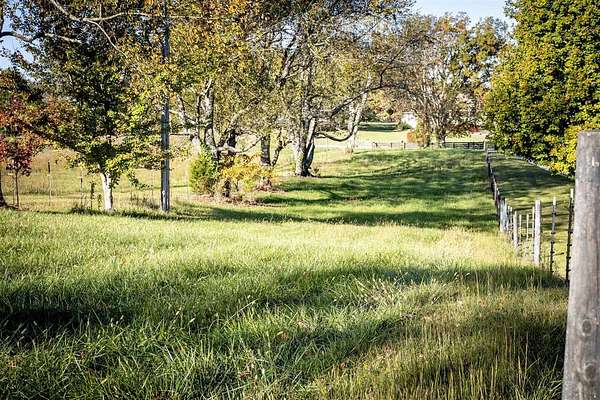 - Barn, Concrete Walks, Covered Front Porch, Exterior Lights, Fence, Line Fence, Mature Trees