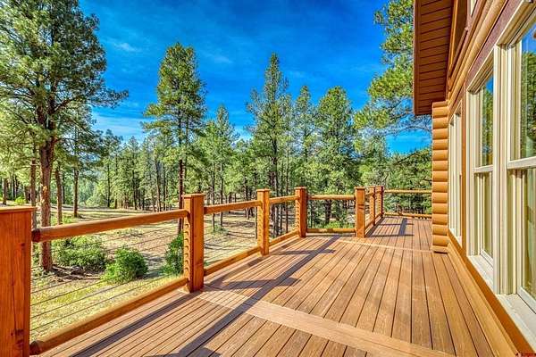 Mike Heraty, ENGEL & VOLKERS Pagosa Springs, C: 970-946-6030, Mike@PagosaRealEstate.com, www.pagosarealestate.com: Two Bear Ranch - Your Private Mountain RetreatIf you've been searching for a property where privacy and recreation come together, welcome to Two Bear Ranch. Set within a 250-acre gated community with only three residences, this home offers unmatched seclusion -- you won't see another roofline from your deck. Bordered on two sides by 133,000 acres of National Forest, the adventure begins right outside your door with endless hiking and game trails.The log-and-timber home is in pristine condition, with newly sealed exterior, fresh paint and abundant natural light enhanced by a professionally thinned forest setting. The main floor features a primary suite, while the upper level provides additional guest space. The fully finished walkout lower level includes a family room perfect for a media or game area, and flexible space for gear storage, a fitness room, or home office. This space even has potential to be converted to a guest studio perfect for visitors, family or even multigenerational living.Outdoor living is year-round with covered Trex decks front and back, a hot tub to unwind after a day of skiing or fishing, and a firepit for gathering under the stars. The nearly new 1,500 sq. ft. shop with roll-up doors is ready for your equipment, vehicles, and toys -- or could even be converted into an indoor Pickleball court. A small pond attracts deer, fawns, and the occasional bear, creating a true sportsman's paradise.Efficient heating, solar gain, and a wood stove keep things comfortable, while the community provides central water and year-round road maintenance.Less than 15 minutes from Historic Pagosa Springs, home to World-Famous Hot Springs, the San Juan River, mountain shops and an abundance of restaurants. Pickleball your thing? 8 brand-new courts will have you meeting locals and vacationer alike. Wolf Creek Ski Area is less than 40 minutes away - full of powder, without the crowds, think fresh tracks for days. Pagosa Medical Center is nearby, and private air service is easily accessed at Stevens Field or commercial service is available an hour away Durango Airport with flights to Denver, Phoenix, Dallas and Houston.Two Bear Ranch isn't just a home -- it's a lifestyle of privacy, adventure, and mountain living at its best.