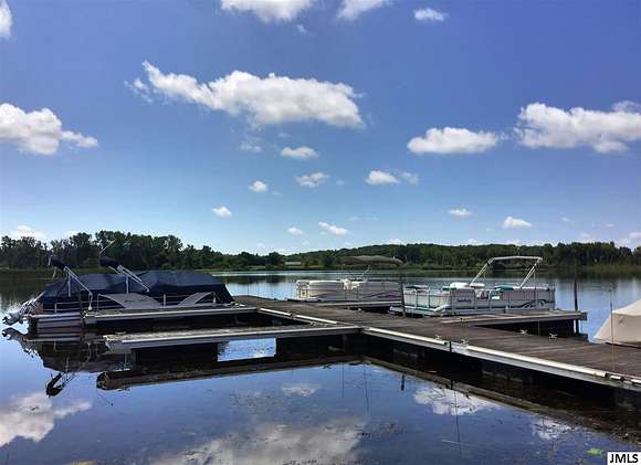 Est $691/moAll sports Brill's lake picturesque 2.16 acre wooded lakefront lot. 125 feet of lake frontage in a beautiful, peaceful and gated community. The 140 acre subdivision has street lights, paved roads, walking trails and a community dock on an all sports lake. Utilities and sewer already at the street. Easy access to 1-94 for an easy commute.