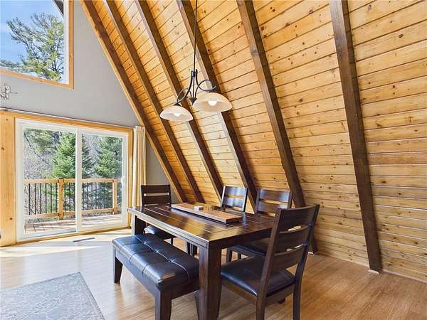 If privacy and waterfrontage are high on your list, take a look at this one. Set on 4.62 acres with over 800 feet along the Yellow River, this nearly turn-key A-frame offers a peaceful setting in the heart of Burnett County. Inside you’ll find 2 bedrooms, 2 bathrooms, a loft, and a finished walkout lower level—ideal for extra guests or hangout space. The home has seen numerous updates, both inside & out, including geothermal heating and cooling (2019), windows, roof (7 years), installed solar panels, and a septic system (2020). The 3-car detached garage gives you plenty of room for vehicles, toys, and tools, and is ready with EV wiring. Whether you’re looking for a full-time home or a weekend place to unplug, this property offers both comfort, room to roam, and a true sense of living in the northwoods.