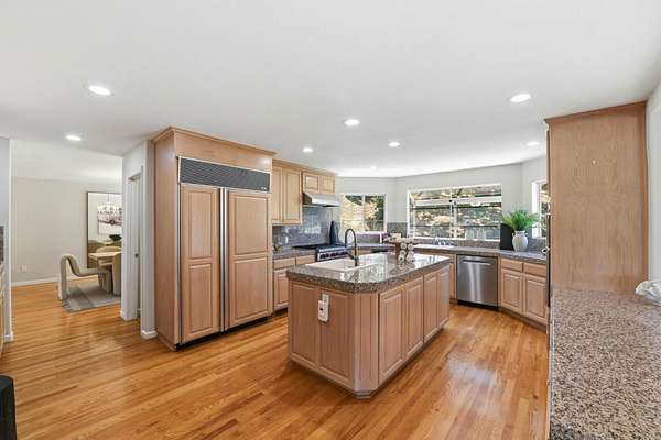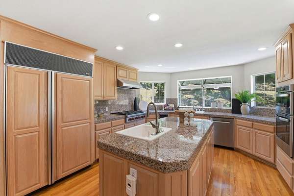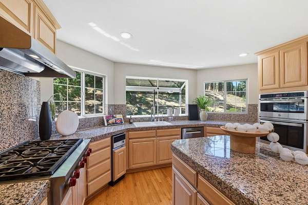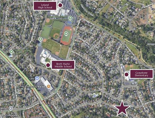 Grand View Estate on 2.42 acres, framed by striking mature cypress. 5 Suites, a multifunction/ in-law suite, a large bonus room, a loft, a 4-car garage, approx 1498 sf basement with 7'-8' high ceiling providing many possibilities. Top-rated Garystone, Bret Harte & Leland schools nearby. *Elevated positioning with sweeping views from multiple balconies and terraces*Grand circular driveway and gated approach*Inviting front patio ideal for entertaining or quiet relaxation * Hardwood flooring * Basketball/recreation area. +++Recent upgrades: * LED recessed lighting throughout * Modern ceiling fixtures in bedrooms * Updated bathroom lighting and fixtures * Fully renovated en-suite bathroom with contemporary gold-tone finishes * Fresh interior paint * New kitchen appliances * New Trex stairs connecting indoor and outdoor living * professionally landscaped grounds with solar lighting. Just minutes away to Almaden Golf & Country Club, Almaden Lake Park, Quicksilver County Park, shopping, dining, and major commute routes (Hwy 85, 87, and 101). This home delivers a unique balance of seclusion and accessibility.