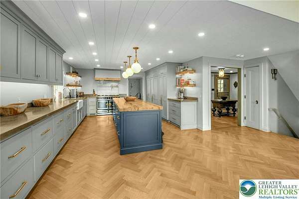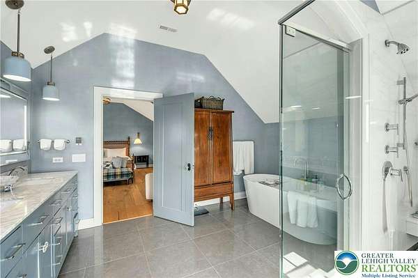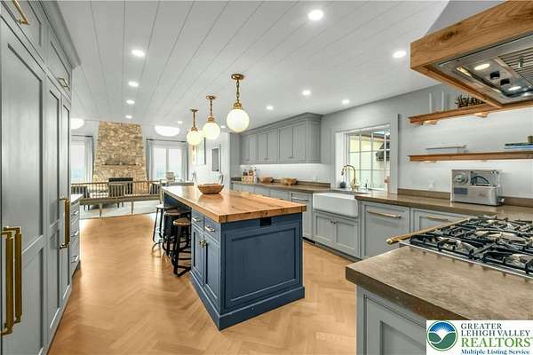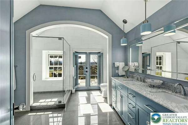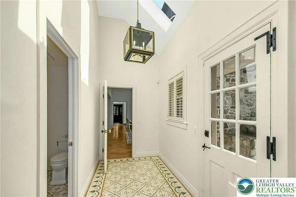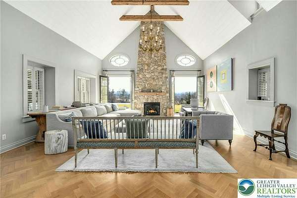 Surrounded by 12 acres of rolling meadows and verdant woodlands, Holmquist Farm epitomizes a harmonious coexistence between nature and the comforts of home. Every aspect of the property has been renewed or improved in the last three years, including stunning new floors & light fixtures in the main house, a detached garage with luxe guest apartment, extensive landscaping, heated saltwater infinity pool, & pickleball court. Each room of the house has a unique charm, from the formal living room with wood-burning fireplace & deep-silled windows, to the expansive family room with herringbone-patterned hardwood floor, 2-story vaulted ceiling & floor-to-ceiling stone fireplace. The 2022 gourmet kitchen is a chef's dream, with a marble backsplash & large island. The nearby dining room is elegant with hand painted orchids adorning the walls & French doors to a courtyard of flowering pear trees. The primary suite is conveniently located on the 1st floor, with a lavish spa bath, private patio & access to the backyard. Upstairs is another full bedroom suite along with 2 additional bedrooms & an updated hall bath. The finished lower level includes a wet bar, bonus room, wine room, home theater, full bath & stairs to the outside. A newly built detached garage offers space for 5 vehicles, a laundry room, sauna & half bath. Above, a fabulous guest apartment features a large living space with fully equipped kitchen, along with 2 sunny bedrooms, a full bath & state of the art exercise room.