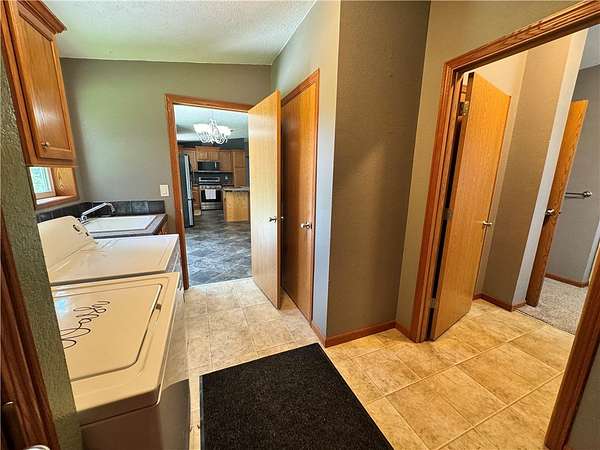 Rare opportunity to own over 10 acres of beautiful Northwoods land! This property is a hobby farmer's dream, featuring a barn and space to raise animals, along with some trails winding through the acreage. The 3-bedroom, 2-bath home boasts a 2-car attached garage and a walkout basement, offering endless possibilities with 1,300 sq ft of unfinished space, already plumbed for a bathroom. Built in 2014, the home includes modern appliances and is plumbed for wood heat, with an outdoor wood stove building ready to make use of your own land for fuel. Enjoy easy access to outdoor adventures with nearby lakes, rivers, snowmobile, and ATV trails, while being just minutes from the charming town of Winter, which offers all the essentials. With a patio door leading to a backyard that's ready for your oasis vision, this property combines comfort, recreation, and endless potential!