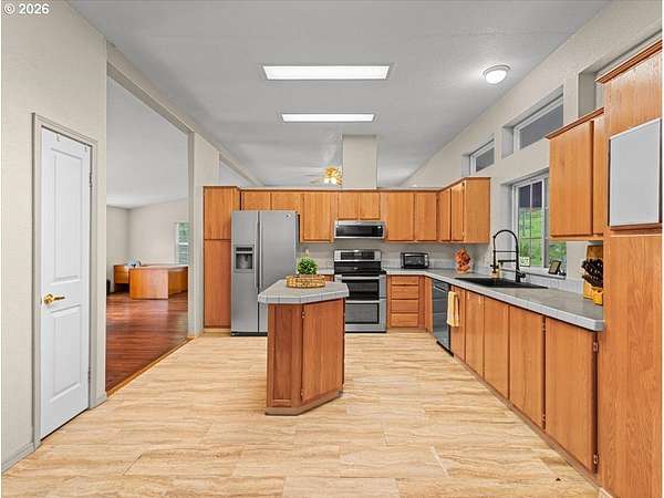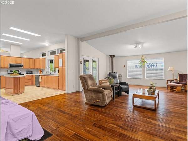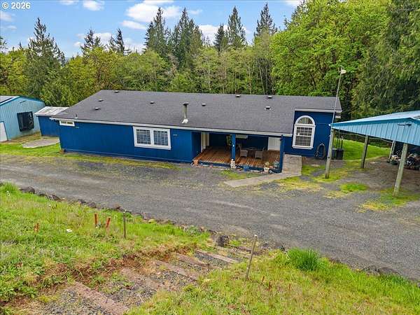 Tucked away on a peaceful private road, this 3.45-acre retreat offers the perfect blend of privacy, functionality, and Pacific Northwest beauty. This spacious 2,706 sq ft triple-wide manufactured home features 3 bedrooms, 2 bathrooms, and an open-concept layout with vaulted ceilings and abundant natural light throughout. The heart of the home is the generously sized kitchen with island, ample cabinetry, and seamless flow into both living and family rooms-ideal for everyday living or entertaining. Step outside to enjoy expansive decking and covered outdoor spaces, perfect for soaking in the surrounding territorial views and serene setting. The property is fully equipped for a variety of uses with multiple outbuildings, workshop space, RV/boat parking, and room to create your dream hobby farm. Garden areas and an existing poultry coop provide a head start for those seeking a more self-sufficient lifestyle. Enjoy the tranquility of country living with trees, open space, and privacy-yet still within reach of town amenities. With well water, septic, and supplemental solar, this property offers both independence and opportunity. Whether you're looking for space to spread out, room for toys, or a peaceful escape, this Rainier property delivers the lifestyle you've been waiting for.