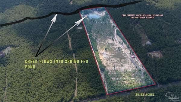 EXCLUSIVE & PRIVATE. This stunning 20.82 acre property near the heart of Pace is the perfect place to build your country estate. It is located in the coveted and gated community of Hidden Forest and offers a beautiful oasis with long driveways tucked away providing the ultimate in privacy. Building your dream estate can begin immediately as most of the pre-building development has been completed. A large residential site has been cleared and graded, underground power has been run to the site, a residential well with a stepped-up pump and an irrigation well are in place, front pine trees have been thinned and trimmed to promote lush growth, dirt is on site and ready to spread for your lawn and the fence lines are cleared for quick fence installation. This property features a beautiful spring-fed pond that never drops below level and has a 12" overflow that empties into the crystal clear creek which runs across the back of the property. Wildlife is present and livestock are allowed. All utilities are underground and High Speed Fiber is at the roadside. Come see this beautiful land today and begin planning your own country getaway.