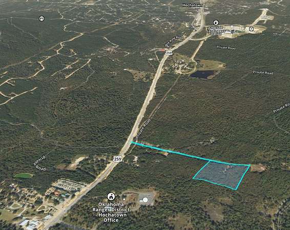 This 9.83 +/- acre tract is located just minutes from Hochatown, one of Oklahoma's most sought after recreational and investment destinations. The property directly adjoins the Ouachita National Forest, offering access to thousands of acres for endless exploration and outdoor fun. The tract is perfectly situated with convenient access to Hwy 259N, allowing easy travel to Hochatown's dining, entertainment, and local amenities, while still delivering the peaceful, secluded atmosphere people travel to Southeast Oklahoma to experience. Whether you're planning to build a private retreat, develop cabin sites, or invest for growth, this property offers outstanding potential. Hochatown continues to rank among the region's top performing short-term rental markets, making this an excellent opportunity for investors seeking cabin development and rental income. Proven demand and strong investor interest support both near-term and long-term upside. Opportunities like this near Hochatown are becoming increasingly rare as inventory tightens, so call today to secure your position in one of Oklahoma's most desirable recreational and investment markets Distances to area attractions: - Approx. 2 miles to Choctaw Landing / Casino - Approx. 3.4 miles to downtown Hochatown - Approx. 4.5 miles to Broken Bow Lake Spillway Recreation Area - Approx. 5.3 miles to Beavers Bend State Park / Mountain Fork River - Approx. 6.6 miles to Beavers Bend Marina and boat ramp - Approx. 6.9 miles to Broken Bow Water and electric available on site. Additional connecting acreage available. No HOA
