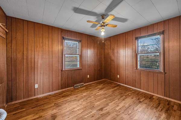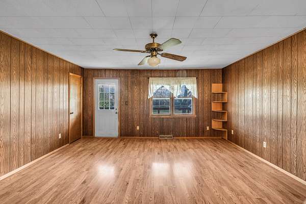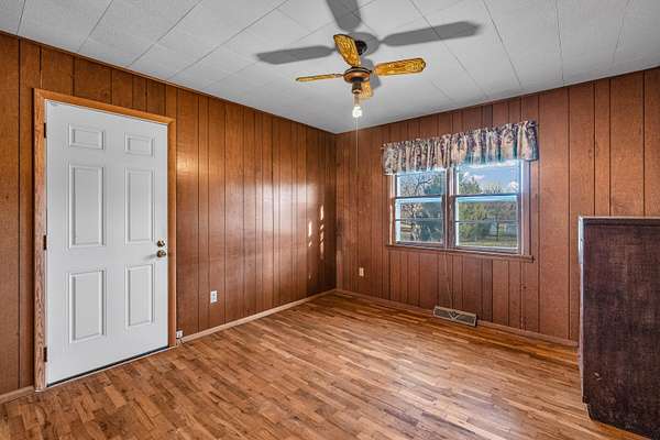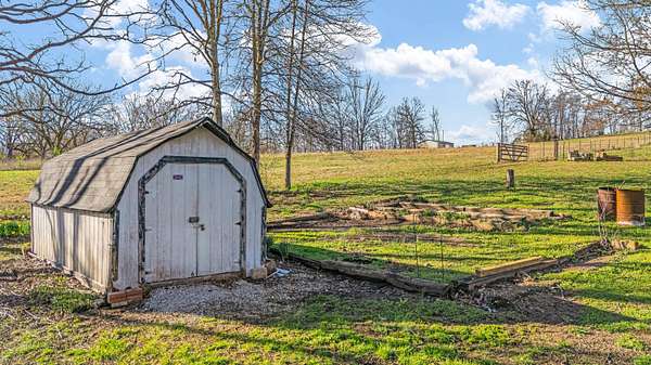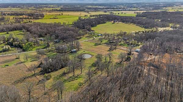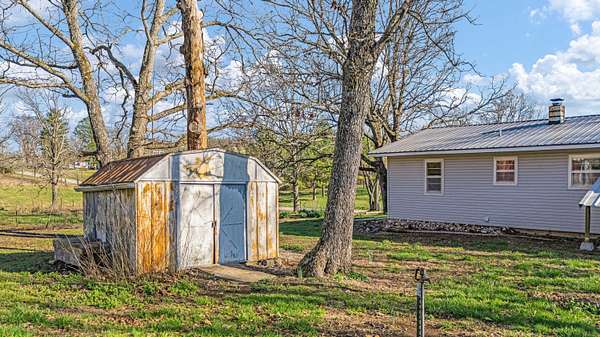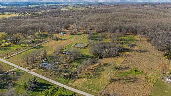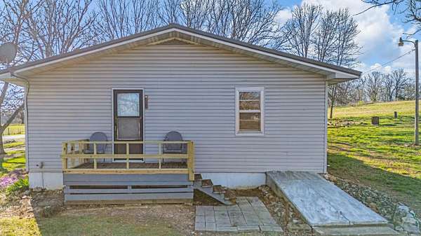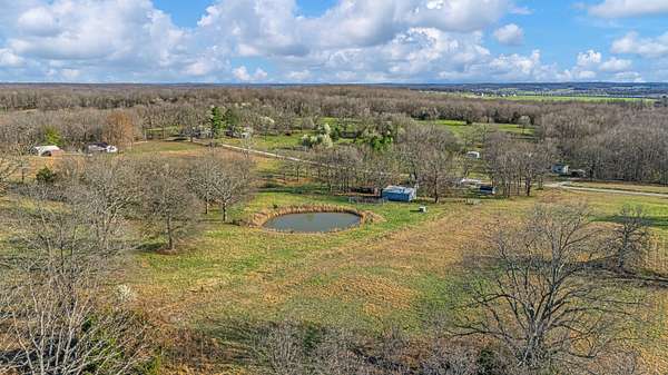 Flexible acreage opportunity with expansion potential less than 3 miles from town with blacktop road frontage. Enjoy the freedom of country living with this move-in-ready 3-bedroom home situated on 9.4 mostly cleared acres just minutes from town. The property also offers the rare opportunity to expand with an additional 6.4 acres and another 39 acres, making it ideal for building, recreation, or hunting, with an existing easement in place providing access to the rear acreage. Inside the home you will find beautiful original hardwood floors and a sunroom filled with natural light, creating a warm and inviting living space. Major updates include a Trane heat pump (2014), updated water heater (2017), and a durable metal roof for added peace of mind. The home also features a full unfinished basement with exterior covered stair access, offering excellent storage or workshop potential. Outdoor living is enhanced by a covered back porch and a side porch off one of the bedrooms. The laundry was moved to a bedroom for convenience but can easily be relocated back to the basement if desired.The property is well equipped for hobbies, livestock, or storage with multiple outbuildings including an 8x16 double-door shed, two 10x10 metal sheds, a 32x18 three-bay lean-to with nearby power at the pole, and a 21x11 barn ideal for chickens or small livestock, along with a 20x18 two-car carport. The acreage also includes a pond with a history of catfish and plenty of open space for gardening, animals, or outdoor recreation. The home is connected to city water but also features a functional private well, perfect for watering livestock, gardening, or potentially supporting another homesite. Experience the perfect blend of rural freedom and city convenience with space, flexibility, and opportunity that is hard to find so close to town.