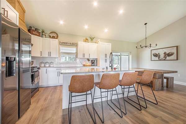 Escape to country living with this stunning 3-bedroom, 2-bath farmhouse built in 2022, offering over 1,800 sq. ft. on 4.94 fenced acres with a separate guest house adds 1-2 bedrooms, 1 bath, full kitchen, living room, office, and garage.
