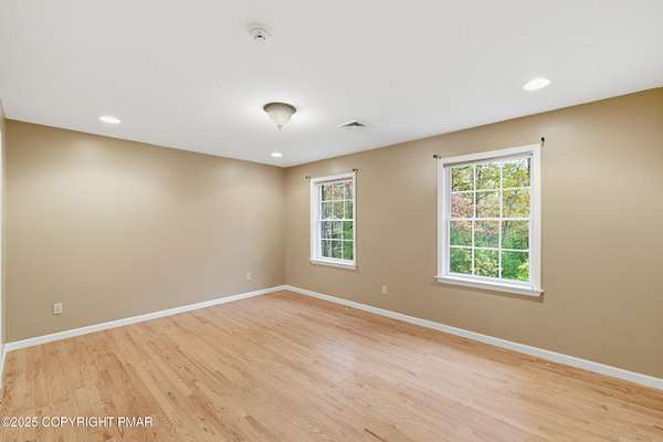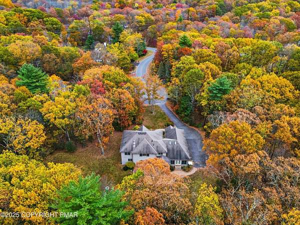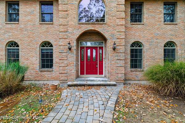 Welcome to the Woodlands-Cranberry community, nestled at the end of a quiet cul-de-sac, this stunning 4bd/3.5 bath, 2 story Colonial Brick Home w/ 3 car garage and extensive driveway, offers a blend of charm, space and privacy on 2.24 acres of peaceful land, all less than 15 minutes from I-80, Route 33, shopping, and hospitals. This home is equipped with an energy efficient, Geo-Thermal System-2 years old, 2 gas fireplaces, 1 septic tank-4yrs old, finished basement that can be used as a rec room, den or media room equipped with a gas heating system. Full size livable furnished room over the garage w/split AC & Heater Unit. The heart of the home is a generous kitchen furnished with new stainless-steel appliances, and ample counter space perfect for home chefs and gatherings and a kitchen nook. Master bedroom and bath on the lower level, powder room, spacious great room with fireplace, dining room and sunroom. Spacious upper level has a master bedroom w/fireplace; master bath & steam shower; spacious walk-in closet, 3 additional bedrooms with a Jack n Jill bathroom and a den which can be used for an office. Outside, enjoy a large, private yard-perfect for barbecues, sports activities, gardening, or simply relaxing. Additional highlights include a gazebo. ''Home Warranty Included'' Come see for yourself this beautifully maintained home!