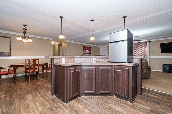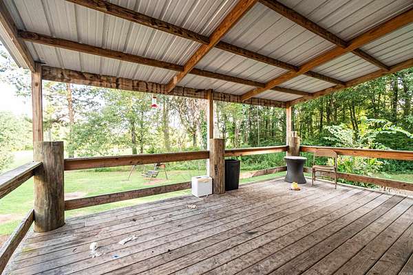 This well-kept 3 bed, 2 bath mobile home sits on a 14.99-acre property, split between two separate parcels--offering space and future potential. Tucked back off a gravel driveway, the home is surrounded by mature woods, creating a peaceful and secluded setting while still being easily accessible. Step inside to an open-concept interior with rich brown and darker finishes that bring warmth and character to every room. The primary bedroom and bathroom are oversized, featuring ample space for furniture, storage, and relaxation. The second and third bedroom make this home ideal for small families, guests, or even a home office setup. Outside, enjoy the expansive deck--perfect for grilling, gatherings, or taking in the views. There's also a covered parking area to keep your vehicle protected from any weather damage. Whether you're looking for a peaceful homestead, a weekend getaway, or land with room to grow, this property offers it all. Located in a great area with a quiet rural vibe, but still close enough to town or the interstate for convenience, this is a rare opportunity to own land, privacy, and a move-in-ready home all in one.