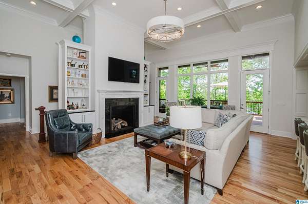 LUXURY LAKE LIVING. Built w brick, stacked stone and amazing trim, this home offers a stunning appearance as you drive onto the property. The home is handicapped accessible w elevator and has all the amenities you could want. 14 ft coffered ceilings in family room, black marble gas fireplace, open floor plan w dining room, beautiful natural red oak hardwood floors and abundance of picturesque windows. The kitchen's vaulted breakfast nook w decorative beams and bay window overlooking lake as well as a large island that seats 8, makes this a DREAM KITCHEN. The master suite features California Organized Closets, Multi Shower Heads w Tiled Shower. The bathtub is jetted w a handheld sprayer. The basement has a lot to offer: large den w fireplace, a second kitchen, two bedrooms and baths, bonus room and office An additional 2 car detached garage, golf cart path to water and a double boat slip patio w fire pit, extended deck and covered patio adds to this amazing home. SAFE ROOM ALSO.