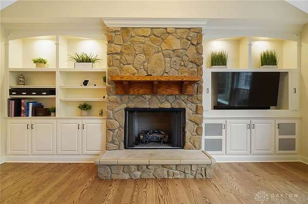 - Bar, Ceiling Fans, Central Vacuum, Fireplace, Kitchen Family Room Combo, Pantry, Second Kitchen, Stone Counters, Walk in Closets, Wet Bar
