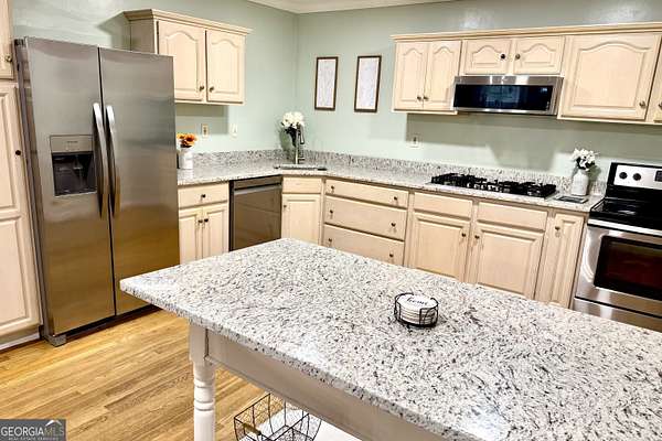 FRESH PAINT IN THE FAMILY ROOM * GRANITE COUNTERTOPS IN THE KITCHEN AND BATHROOM * This home keeps getting better! Located in an exceptional school district and just minutes from everything, is nestled on 1.63 acres of beautifully landscaped grounds. Featuring a sparkling pool, delicate water features, indoor and outdoor living, and over 3,100 square feet of space ready for you to call home. This spacious tri-level residence blends comfort, convenience, and outdoor living in a truly one-of-a-kind setting. With four bedrooms plus a bonus room, three full bathrooms, and a thoughtful layout, it offers room to relax, entertain, and enjoy every season. As you step through the front door, gleaming hardwood floors invite you to explore the home's many unique spaces. Designed to support everything from everyday meals to holiday feasts, the kitchen features granite countertops that provide a warm, functional work surface, complemented with a matching granite island. Cooking enthusiasts will appreciate the gas cooktop and the rare bonus of a second range, ensuring there's plenty of space for preparing large meals. A generous walk-in pantry connects the kitchen and family room, keeping essentials close at hand and making it easy to move between cooking and entertaining. The dining room rises dramatically with a two-story ceiling, creating an airy, open atmosphere filled with natural light. Along one wall, a built-in window seat invites you to relax and take in expansive views of the backyard. The tall windows stretch upward, emphasizing the room's height and allowing sunlight to pour in throughout the day, while a classic brick fireplace, updated with gas logs, adds warmth and character. The space feels both grand and welcoming-perfect for gatherings that flow effortlessly between the indoors and the peaceful outdoor setting. A flexible floor plan provides multiple gathering spaces, including a bright sunroom or playroom off the kitchen with windows looking out to the pool on one side and built-in storage on the other. Upstairs, you'll find three of the four bedrooms, including the primary suite, two additional bedrooms, and a second full bath. Downstairs, the fourth bedroom functions as a comfortable secondary suite, complete with a wood-burning fireplace, large walk-in closet, private bath, and a versatile bonus room. An optional private entrance from the backyard adds flexibility for guests, extended family, or independent living. Step outside to your private haven. A sparkling 18x36 vinyl in-ground swimming pool, installed in 2023 with a new pool pump in 2025, invites you to unwind or host summer gatherings, while the expansive covered deck and backyard pavilion offer shaded spots for dining and entertaining. The fenced backyard provides privacy and security, making it ideal for both family living and entertaining guests. For moments of peace, explore the landscaped grounds where a pond with a cascading waterfall is home to lotus flowers and surrounded by pollinator-friendly plantings. Fruit trees, herbs, vegetables, and berry bushes offer seasonal harvests and add to the property's natural beauty. Every detail of the landscape has been designed to create visual appeal and harmony with nature. Additional highlights include a welcoming front porch, a spacious carport and 2 additional parking pads offer room for multiple vehicles or even a boat, and ample storage. This property is more than just a house-it's a way of life. Imagine mornings with coffee on the porch, afternoons by the pool, evenings gathered under the pavilion or covered deck, and weekends enjoying fresh fruit or vegetables from your own trees and plants while listening to the soothing sounds of the waterfall pond. With its rare combination of updated interiors, expansive outdoor living, and over an acre and a half of land in the middle of town, this home is truly special.