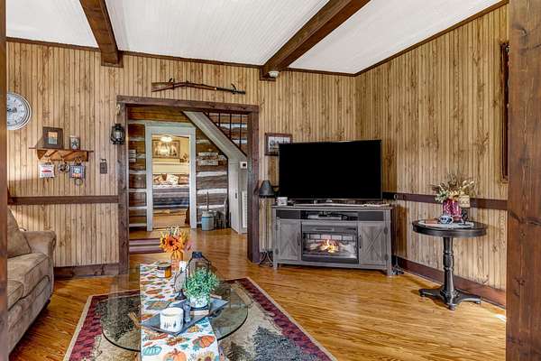 The 1900 log home features 3 bedrooms, 1 bath, and 1,814 sq ft of rustic character that vacation guests actively seek. Modern improvements include newer double-pane windows, a 6-year-old metal roof, brand-new 4-ton heat pump HVAC system, and new fireplace insert—providing comfort and reliability for owners and renters alike.
