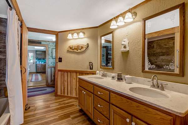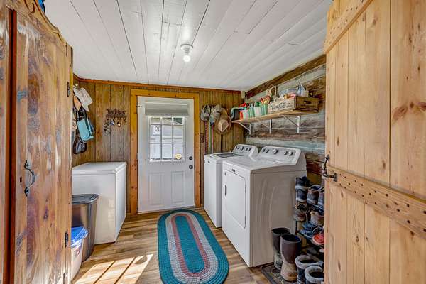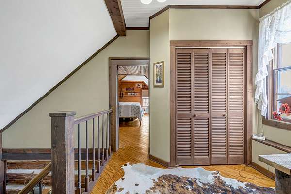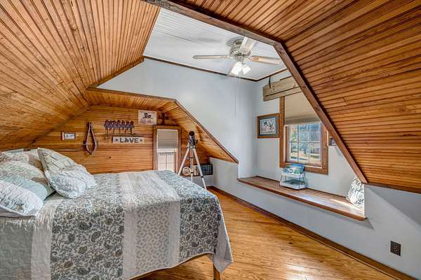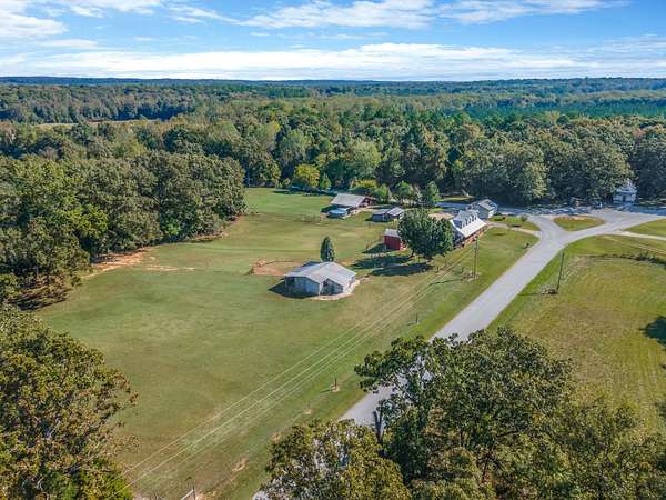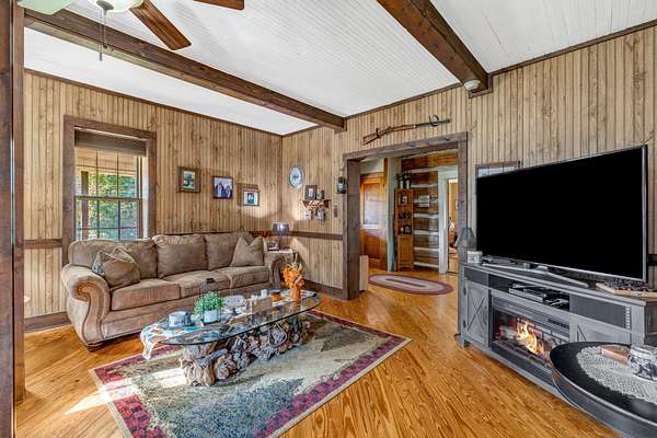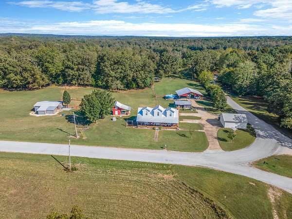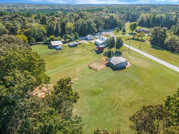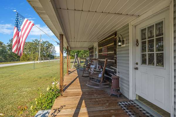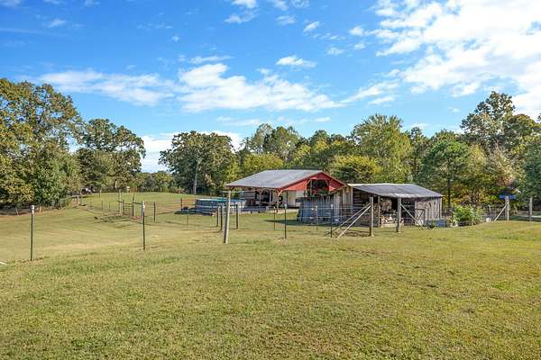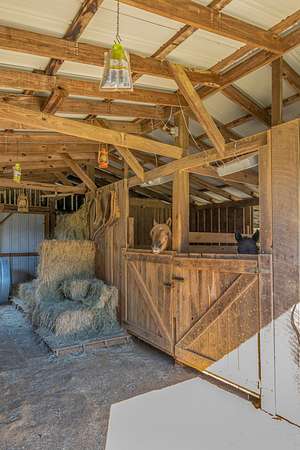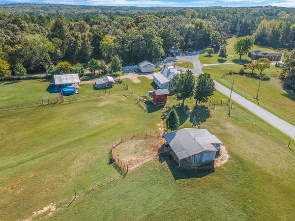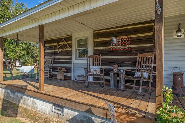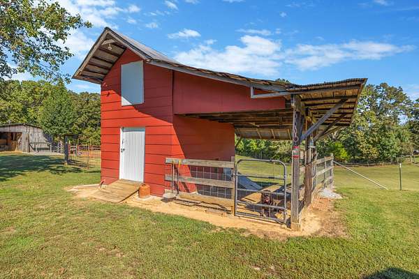 Outdoor amenities enhance its revenue appeal: 3-stall horse barn with tack room and hay storage, three fenced pastures, large pole barn, two-car detached garage with oversized attic storage, original smokehouse with underground storm shelter, insulated deer stand, above-ground pool, and covered porches ideal for relaxing after a day on the trails. Ample space allows room to expand amenities or tailor the property to niche outdoor rental markets.