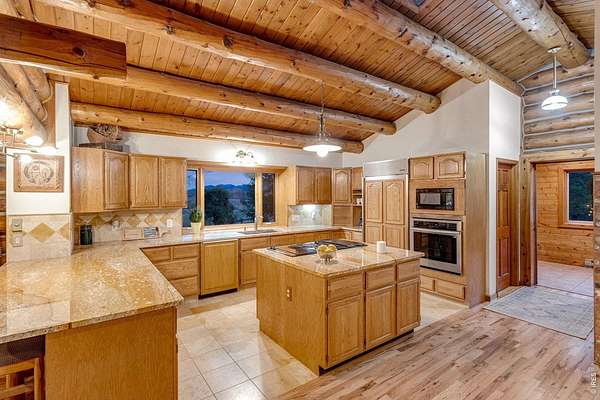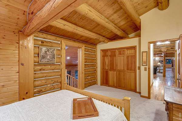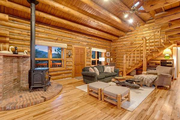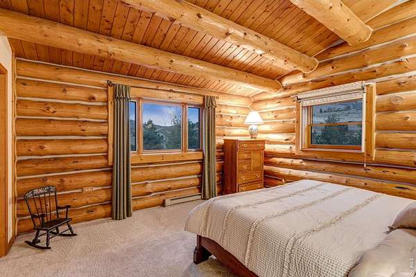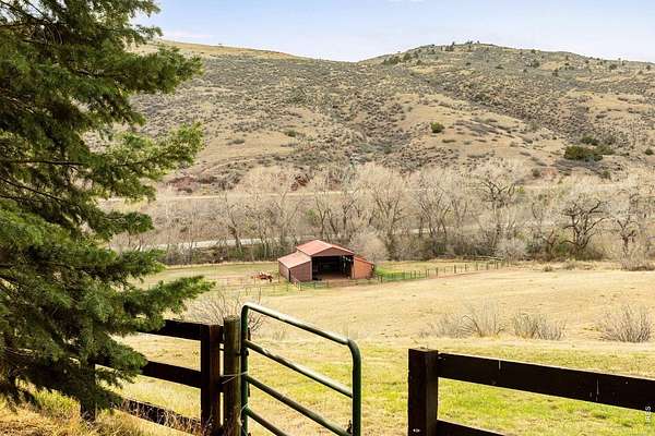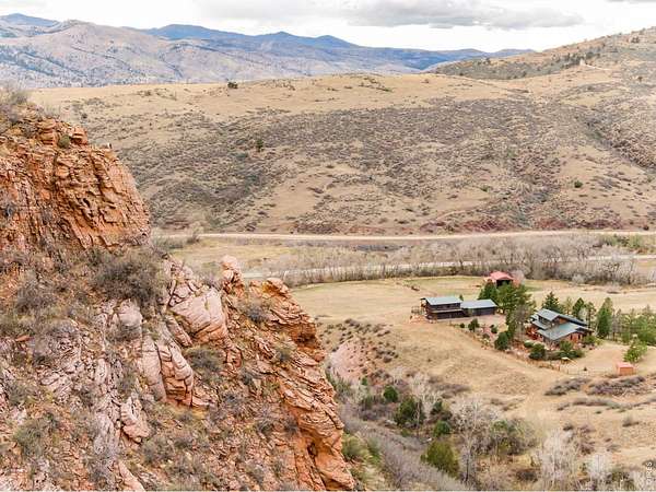 35 incredible acres w/ Redstone Creek flowing along the entire west boundary, offering a rare blend of red rock outcroppings, pastures, rolling terrain, mature trees, abundant wildlife, & sweeping Rocky Mountain views from nearly every window & patio, all w/ NO Metro Tax, LOW HOA, & FA1 zoning. Bring your horses, farm animals, toys or simply relax & enjoy nature. Easy access to Fort Collins & Loveland, both consistently ranked among the best places to live & or retire. This property offers peaceful Colorado living at its finest. 1.5 miles from Horsetooth Reservoir, 7 miles to Fort Collins, & only 45 minutes to Estes Park & Rocky Mountain National Park, delivering unmatched access to recreation, trails, & natural beauty while maintaining privacy & space; w/ a private gate & gradual tree lined driveway to property. Enjoy 300 days of sunshine, w/ a comfortable elevation of 6,750 -6,900 feet above sea level. 4,294 finished square feet. This beautifully maintained custom built log home w/ open floor plan features hardwood floors, new carpet & padding, hand hewn log beams, tongue & groove pine ceilings, Pella windows, 8 panel solid core doors, family room w/ skylights & a pellet fireplace, open kitchen w/ granite slab countertop, center island & all appliances included, large formal dining, main floor laundry, massive sunroom, office, 2 spacious bedrooms w/ retreats, & an upper primary suite w/ vaulted ceilings, walk-in closet, & luxury 3/4 bath. Incredible well & water filtration system, 500-gallon owed propane tank, new $80K metal roof installed December 2025, high-speed internet options, oversized 6 car heated detached garage/workshop & a 781 square foot game room above w/ VIEWS & a wraparound deck. Exceptional outdoor living including stamped concrete patios, shooting range, covered spaces, barn w/ tack room, stalls & hay storage, & endless Colorado lifestyle opportunities. Call for a full feature list, floor plan, or to schedule a private tour