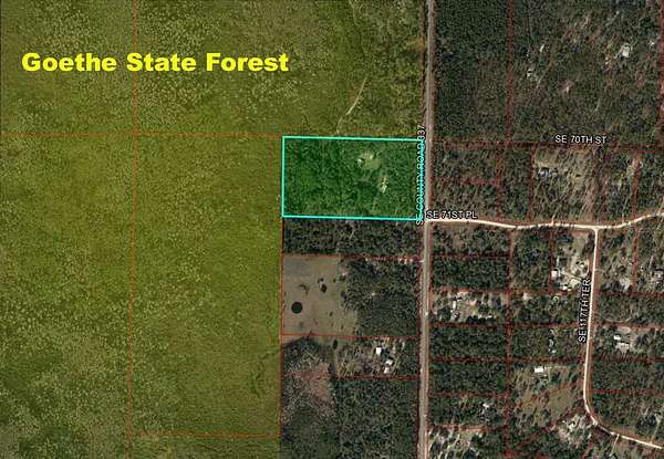 Under contract-accepting backup offers. OVER 20 ACRES BORDERING THE GOETHE STATE FOREST!