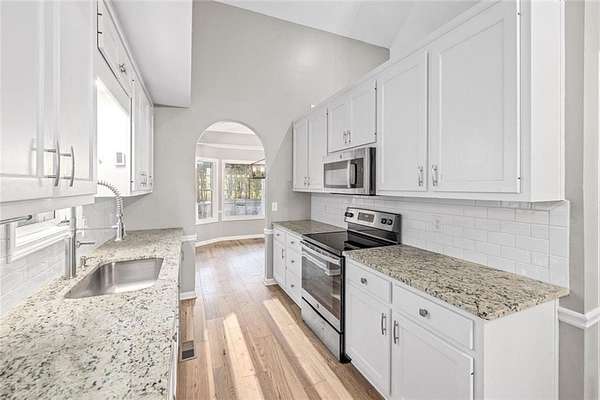 Welcome to 7050 Walnut Mill Ct. This move-in-ready residence in North Forsyth sits on over 1.5 acres and features a private, wooded, fenced backyard. The expansive lot and desirable location make this property ideal for families seeking space and convenience. The home offers four bedrooms and three bathrooms, including a versatile large room on the second floor suitable as a bedroom, media room, office, or playroom. The main-level en-suite boasts hardwood flooring, tray ceilings, a walk-in closet, and scenic views of the surrounding woods. The updated en-suite bath is appointed with a double vanity, upgraded plumbing and lighting fixtures, and a custom shower.The kitchen is equipped with a breakfast area, pantry, granite countertops, new stainless appliances, and LVP flooring. It opens to the living room, which features vaulted ceilings and a stacked stone fireplace. Located within the sought-after Walnut Grove swim/tennis community with award-winning schools, this property is conveniently situated five minutes from GA-400, and near Publix, Wal-Mart, dining, and shopping. Dawsonville outlets and Cumming's City Center are just fifteen minutes away.Recent updates and enhancements include: New hot water heater (November 2020) Professionally cleaned dryer exhaust vent (December 2020) Basement LVP flooring installation (October 2021) New soffit and fascia with full exterior professional sealing (February 2022) Two new garage doors and openers (motors/tracks) Complete siding replacement Newly installed backyard fence Septic tank serviced (2023) Complete LVP flooring throughout most rooms, except for carpeted front bedrooms (April 2024) New tile flooring in laundry room, guest bathroom, and master bathroom New garage ceiling drywall and paint New guest bathroom vanity Fully renovated en-suite bathroom featuring custom tile shower, frameless shower glass, new lighting, and Bluetooth LED exhaust fan Entire home re-piped with code-compliant PEX water lines and water flow shut-off valve New HVAC system by Airotron Inc. with 10-year warranty (installed June 14, 2025; includes coil, condenser, and furnace blower motor) Front landscaping improvements with 52 new plants, 150 bags of mulch, and 100 bales of pine straw (current year)