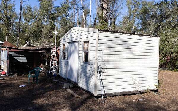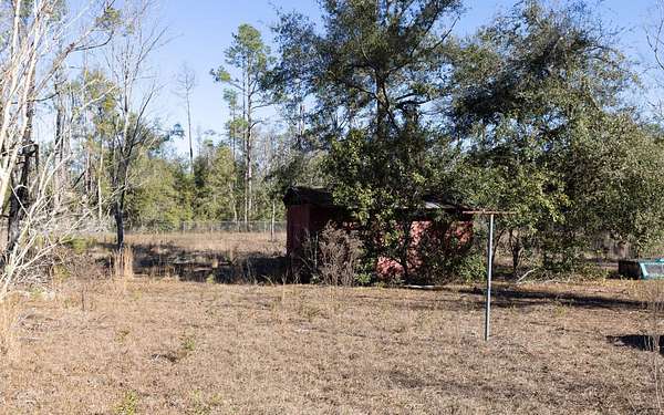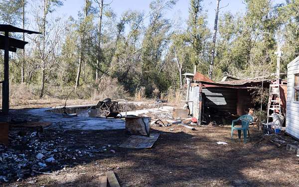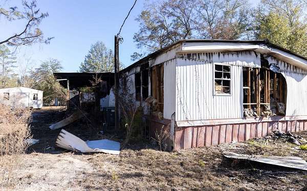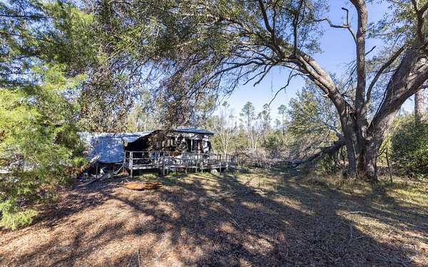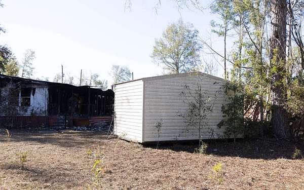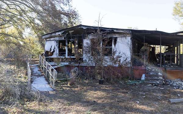 Good opportunity for a fresh start! This 4 acres has a burned home (not salvageable) and part of a former inground pool that will need removed and cleaned up by the next owner. Would then make a nice future home site. There are approximately 2 acres of area chain link fenced in, two sheds, nice planted trees including cedars and pecans. Short distance off of a paved road. There is existing well, septic system and power pole, but no guarantees or warranties on it. New permitting and inspections would be required to get power turned back on. Small amount of flood zone AE per maps. Cash offers only please. Please do not attempt to go into or around the burned down MH, a lot of hazards, as well as the open former pool area as shown in the photos.