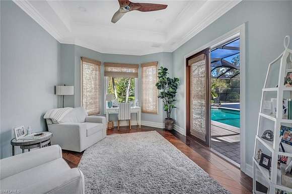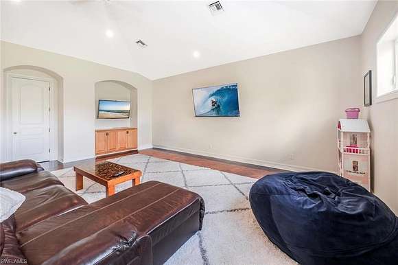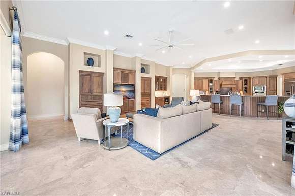 Welcome to this STUNNING Estate Home situated in the Premiere Livingston Woods Neighborhood! From the moment you walk-through the beautiful French front doors, you get a Spectacular Grand Foyer and Pool/ Backyard View. This 5 bedroom + den two-story home also features 3 of the bedrooms with en-suites; 5 full bathrooms, 4 car bay garage with workshop/bonus room to meet the needs of car enthusiasts. This meticulously cared for home has impressive updates such as; kitchen quartz countertops, subway tile backsplash, Dacor Microwave Oven, Built in Cabinet Ice Maker, ALL Interior Cabinet Hardware, Built-In Gas Grill; Lighting and Ceiling Fans Inside and Out, and fresh interior paint. The First-Floor guest bedroom has recent A/C replacement. The home's layout is an entertainer's dream with its Open Concept Kitchen/Great Room and 90-degree sliders that open for true indoor/outdoor living. Grill up a fresh catch on the new outdoor grill and dine al fresco on the beautiful lanai by the pool and spa. The pool equipment updates include; heater, filter, and a conversion to a saltwater system along with a new Lanai Cage. The outdoor accent Lighting has been updated and enhanced Lush Landscaping. The Primary Bedroom has a Spa like Ensuite, with Built-in closet systems and a multipurpose area for lounging or workouts. The Office, located right across from a full bathroom, is Light and Bright and can be used as a 6th sleeping space. The first floor guest bedroom is ensuite with access to the Lanai. The Second-Floor features 3 bedrooms, 2 full bathrooms, a family room is perfect for extra living space, with closet and EXTRA storage space. The laundry room is a WOW! with built in cabinets and countertop space galore! The under stair walk-in pantry provides additional convenience. This well designed home in a FEMA X Flood Zone is in a prime location within minutes to top rated schools, shops, restaurants and Naples' beautiful white sandy beaches, Don't let this rare gem get away!!