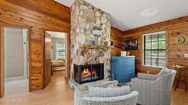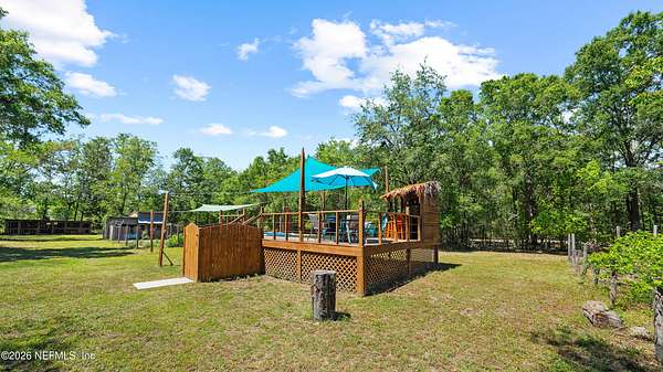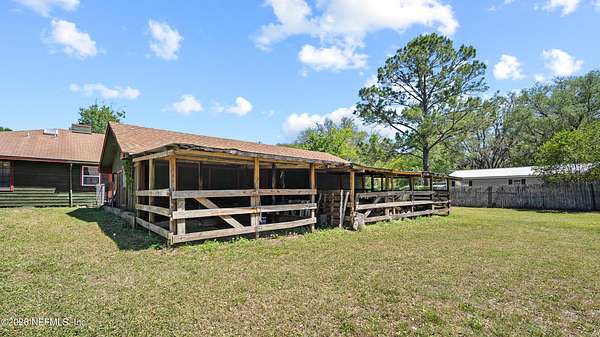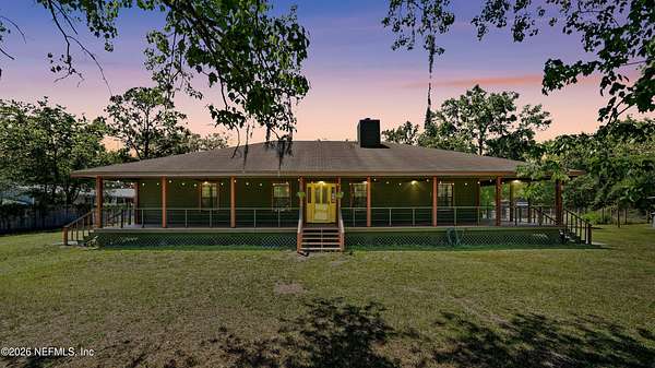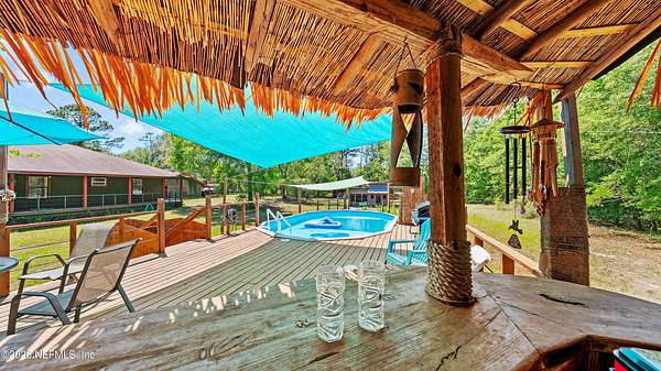 The perfect blend of rural living with unbeatable convenience! Enjoy acreage without the hassle--bring your horses, raise livestock, and live freely just minutes from town. This property is truly high and dry! The home features a charming rustic cabin feel with a sought-after wraparound porch. Inside offers move-in ready, open-concept living with three beautifully remodeled bathrooms and 3 large bedrooms. Also includes multiple living spaces include a large den perfect for a movie room or entertaining. Step outside to your private pool and tiki bar--ideal for relaxing or hosting. The property is fully equipped for animals with space and structures already in place. Additional features include a large, enclosed work room, detached two-car garage, and RV carport. Space, charm, and convenience all in one! Sellers have full inspections already completed including a Home, WDO, and Septic. A NEW ROOF is included at this price. A truly ready to move in home!