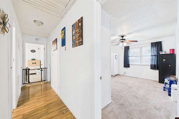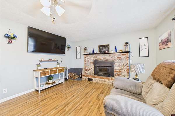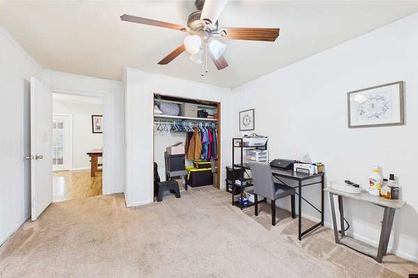 - Carpet, Ceiling Fan(s), Fireplace, Laminate Floor, Tile Floors, Walk in Closet