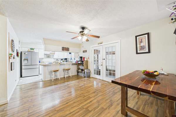 Est $1,136/moCharming 3-bedroom, 1.5-bath home offering 1,470 sq. ft. of comfortable living on a level, fenced 1.6-acre m/l lot with easy access to Hwy 62, the White River, and Mountain Home. Updates include a new roof in 2019, well re-drilled in 2020, HVAC and hot-water heater in 2023. Inside, enjoy a spacious living room with a cozy wood-burning fireplace, a functional kitchen with a walk-in pantry, master bedroom with a half bath, and a covered back patio that brings in natural light and leads to the backyard. Outside, the 23' x 37' detached garage features two large bays--perfect for vehicles, storage, or a workshop. This well-kept property combines space, peace of mind, and a great location.