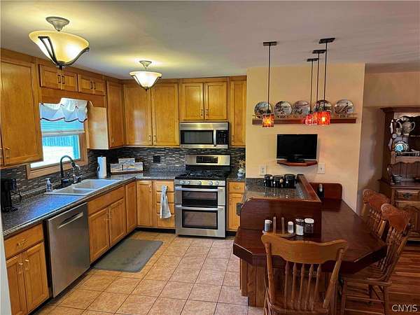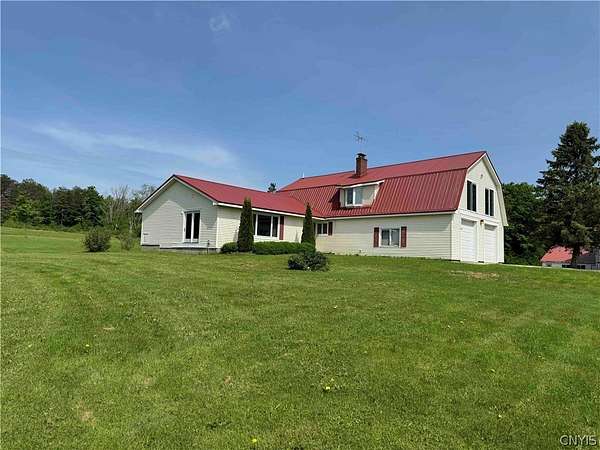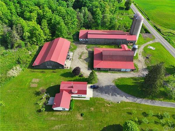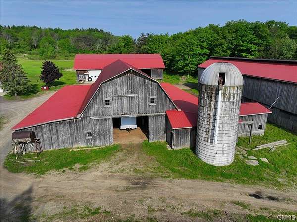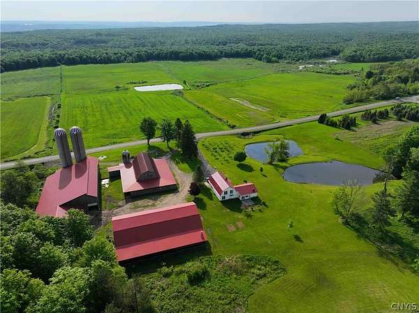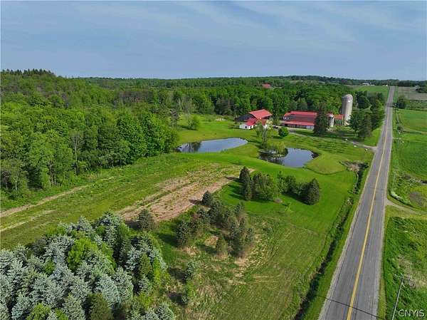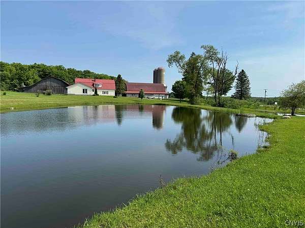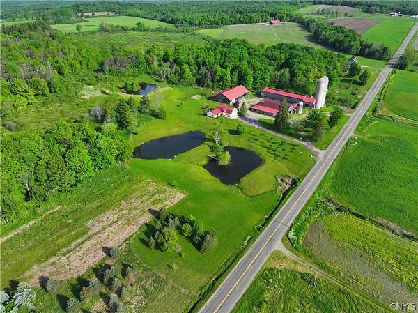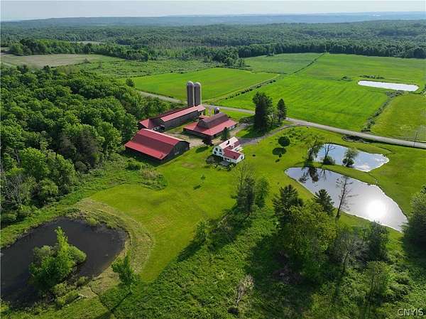 Welcome to Ames Farms consisting of a house, barns, shop, stocked ponds and free gas located on 60 acres in Dewittville NY, Chautauqua County. If you are looking for more acreage, there are approximately 192 additional acres available that are located across the road from this property. Starting with the 2,655 sq. ft. contemporary home which has 4 bedrooms and 3 full bathrooms. Upon entry, there is a spacious living room with a fireplace and mantel which leads to a private, heated sunroom overlooking the backyard. Custom mahogany breakfast bar shared with the large dining area. Main floor offers 1 bedroom and 1 full bathroom. Upstairs has 2 bedrooms, 1 full bathroom and offers a very spacious master bedroom with windows that overlook the valley. An oversized private bathroom includes a stand-up shower and jet tub. Basement is sealed and offers a vast amount of room with built-in shelves for storage. There is also an attached insulated 2 car garage for the winter months. The property is heated by a gas well that will transfer with the property offering free gas to the house, workshop, milk house and sugar shack. The 110 x 80 shop is half sealed off with electric, insulated, and heated which can be used for a business or even another living area. The other half has electric and is open offering many uses such as storage for equipment or can be finished off as well. Hay barn is 100 x 90 and sits in front of the shop which has electric and a well yard hydrant is present, multiple 10 x 13 stalls, 2 large chicken coops, a covered storage area. Next to the hay barn is the free stall barn that is 130 x 90 with an attached milk house which is 46 x 32. Free stall barn has electric and over 100 stalls for cattle. Milk house has multiple rooms including a half bathroom. Sugar shack which is 20 x 20 used for making maple syrup over the years which can be a fun family hobby. 3 large ponds which are stocked with large mouth and small mouth bass, catfish, perch, and bluegill. Next to the ponds is a nice size orchard which has cherry, peach, pear, and apple trees. Approximately 15 acres of open land that can be turned into more tillable ground or grazing land for cattle.