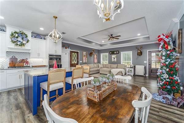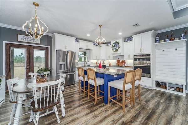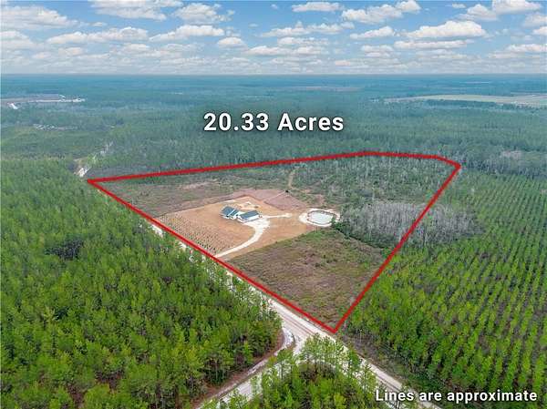 Discover peaceful country living in Millwood Plantation with this beautifully crafted home built in 2022 with 3 bedroom, 2 bathrooms on 20 acres featuring a spring-fed pond fully stocked with bass and frequent deer sightings right in the yard.the perfect private rural setting. The home offers custom cabinetry, granite countertops, a gas stove, tankless hot water heater, custom-built closets, crown molding, an open-concept living area, walk-in pantry, tile backsplash, and ample interior storage. The primary suite includes a walk-in tile shower and soaking tub, while the guest bath features a tub/shower combo, with carpet in the bedrooms for added comfort. Exterior features include a 24x30 powered workshop, a 24x24 open carport, hurricane cable anchors, well water, a 120-gallon gas tank, and power provided by Satilla REMC. Both Starlink and Satilla Fiber internet services are available. The land offers a blend of cleared space and natural beauty, with the pond positioned at the front and water flowing toward the back of the property, creating an ideal setting for privacy, recreation, and quiet country living.